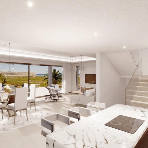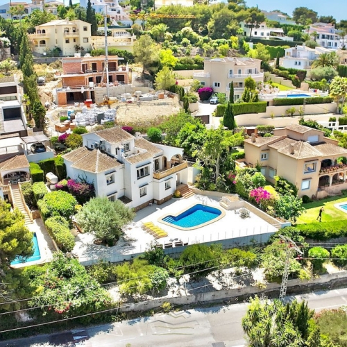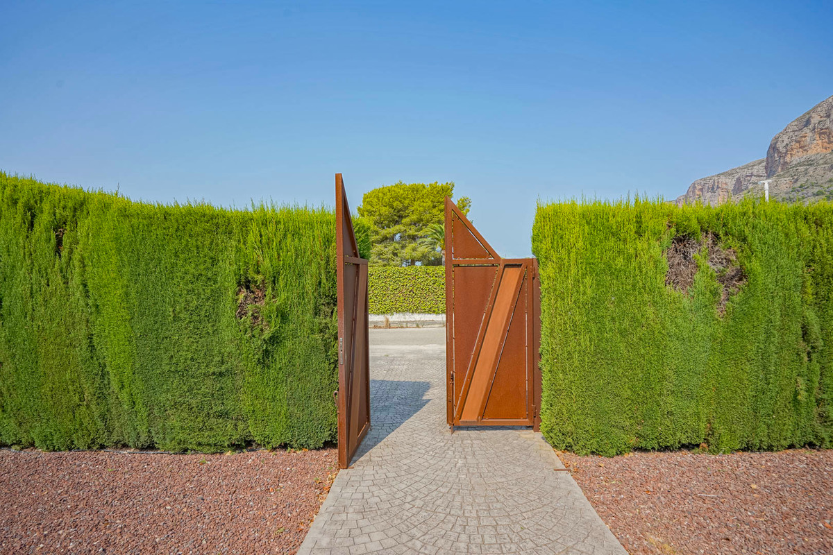 Outside, you will find a spacious south-facing terrace that invites you to relax in the sun, while the north side of the plot offers a beautiful view of the Montgó. The garden surrounding the property and the multiple private parking spaces complete the picture.