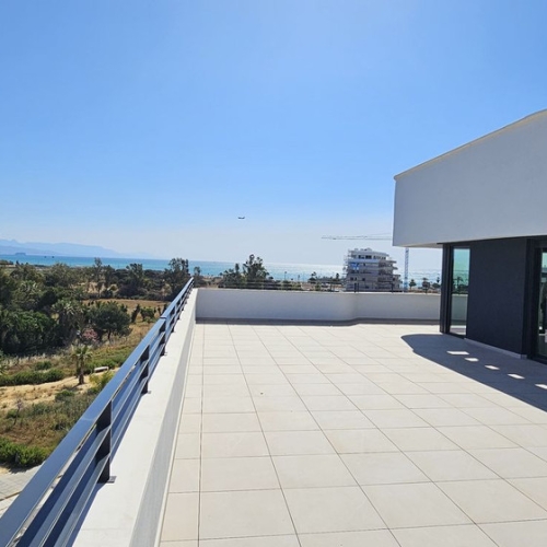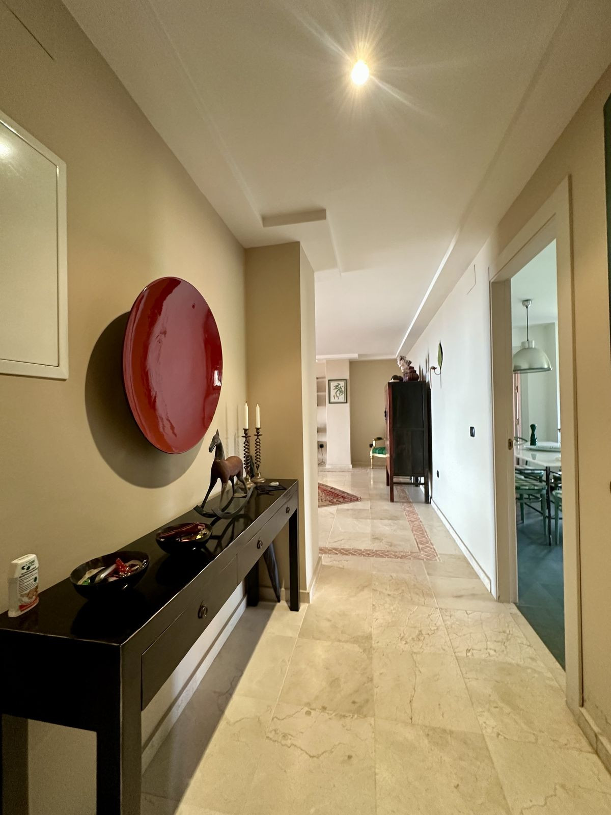 Lejligheden har en stor stue-spisestue med pejs (ca. 50 m²), et meget rummeligt køkken med mulighed for at integrere det i stuen, soveværelse med walk-in-closet og eget badeværelse. Derudover er der to ekstra soveværelser, alle med eget badeværelse, og to med havudsigt. De fremragende byggekvaliteter, såsom aircondition, varme og dobbeltlåse, garanterer maksimal komfort. Der medfølger også en indendørs parkeringsplads og en udendørs parkeringsplads til gæster samt et opbevaringsrum.