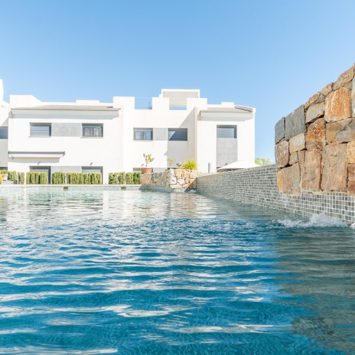 Denne nybyggede ejendom ligger kun 150 meter fra stranden og de naturlige pools i Torrevieja, hvilket giver nem adgang til en af områdets mest populære strande.