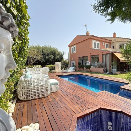 The lower level features a charming lounge with a fireplace and a second kitchen, making this part of the house perfect for guests or as a separate area for the family. The lounge opens directly onto the pool area, where you can enjoy long, lazy days in the sun or take a refreshing dip.