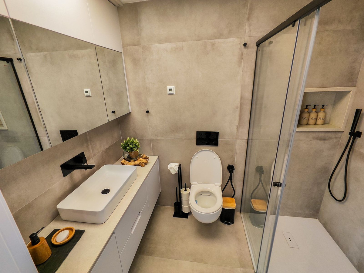 This villa offers everything you could desire and more, featuring three bedrooms with fitted wardrobes and private terraces, three bathrooms with underfloor heating, a spacious living/dining area, and a fully fitted kitchen. The property is bathed in natural light, with sliding patio doors providing direct access to private gardens, terraced areas, and a private swimming pool. Additional benefits include a garage, utility area, electric blinds, a roof solarium with a pergola, an outdoor kitchen, and a smart lock system with a fingerprint sensor.