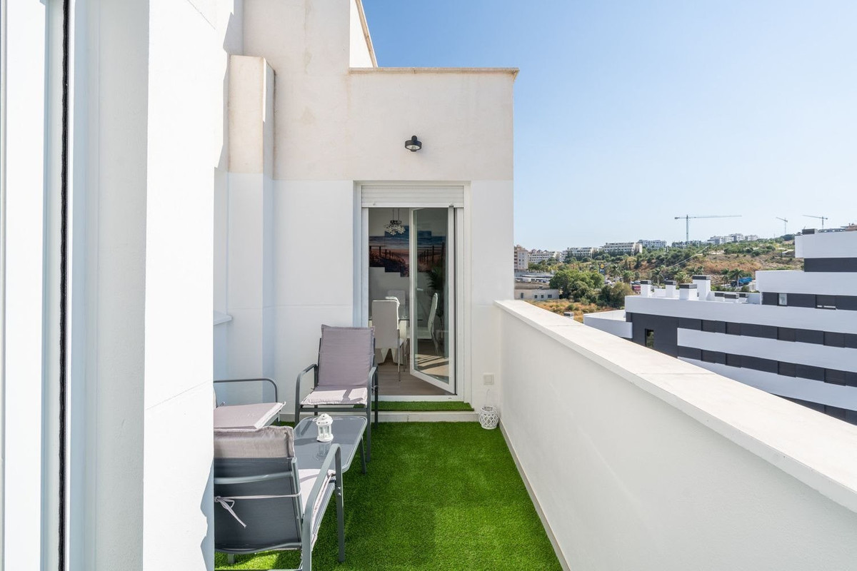 The upper level is home to a fantastic private 30m² solarium, perfect for sunbathing, entertaining, or simply enjoying the Costa del Sol lifestyle. Additional features include a laundry room, storage room, and private parking space included in the price. On the rooftop of the building, residents also benefit from a communal swimming pool, an ideal spot to relax on warm summer days.
