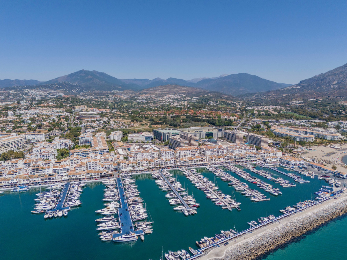 South-facing duplex penthouse with stunning panoramic sea and mountain views. Perfectly located in the center of Puerto Banús, just steps from shops, bars, restaurants, and only minutes from the beach.