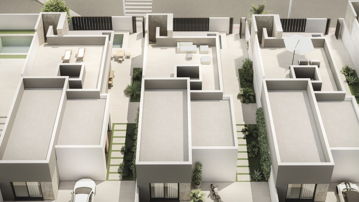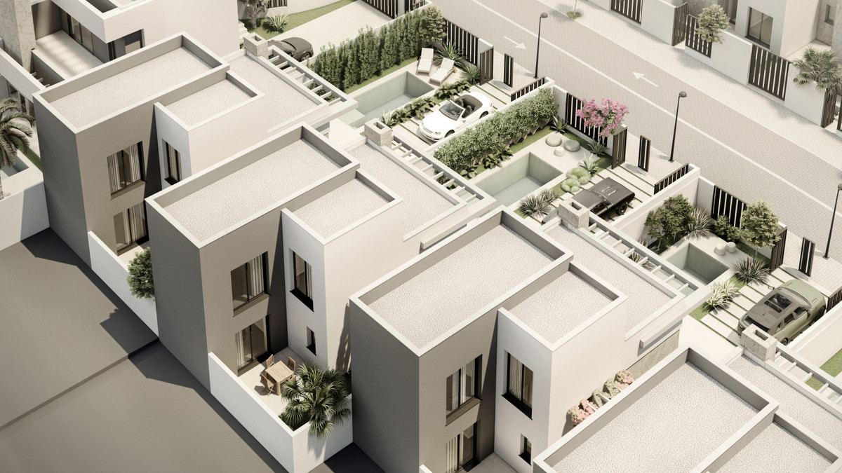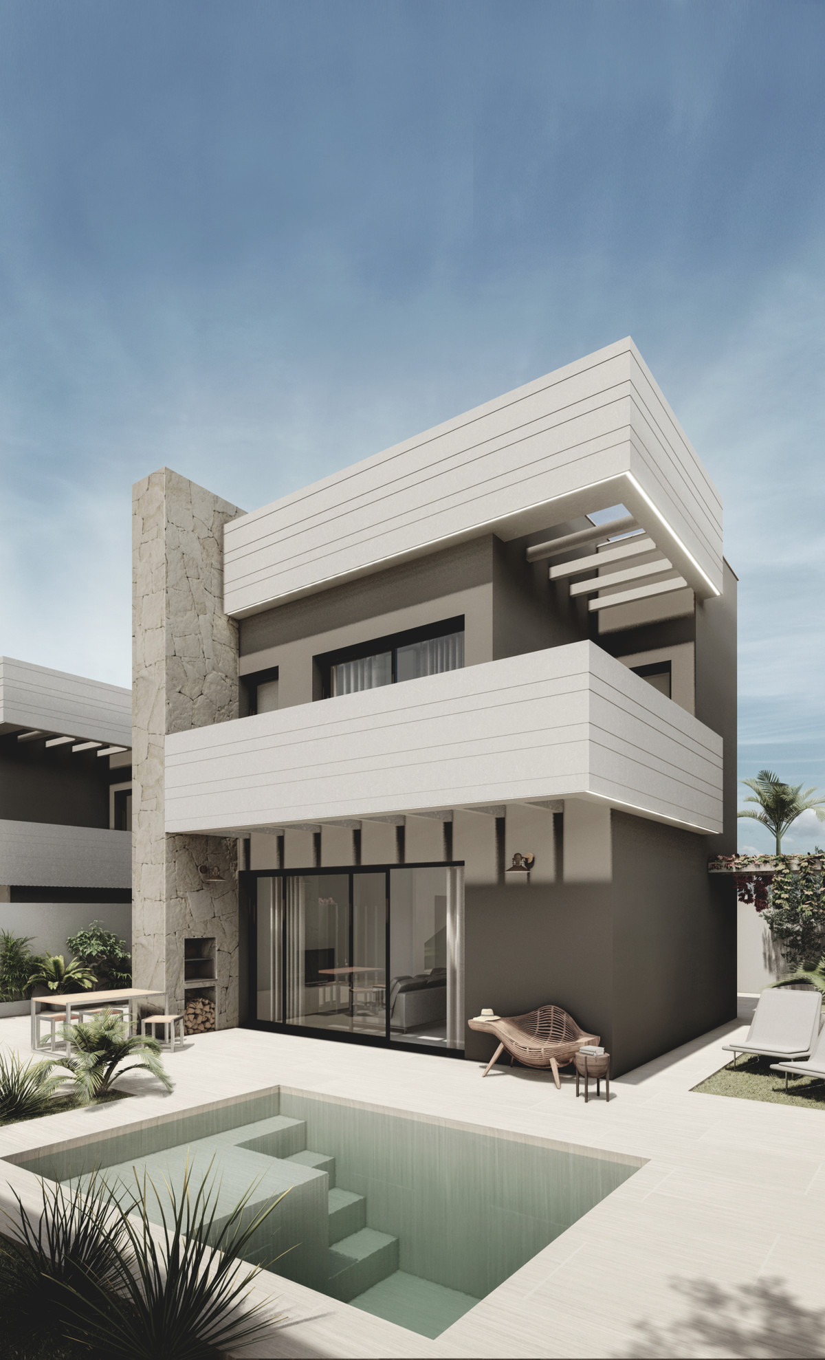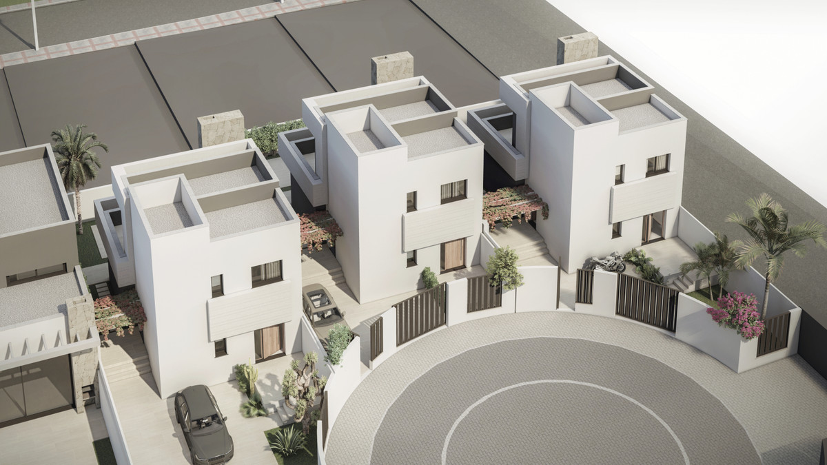Den moderne og innovative arkitektur i dette boligprojekt skaber et boligkompleks i byen San Juan de los Terreros i Pulpi, Almería, i det sydlige Spanien. Disse omhyggeligt udformede hjem og boligkomplekset kombinerer et ekseptionelt niveau af design og kvalitet med de højeste standarder for bæredygtighed og velvære.