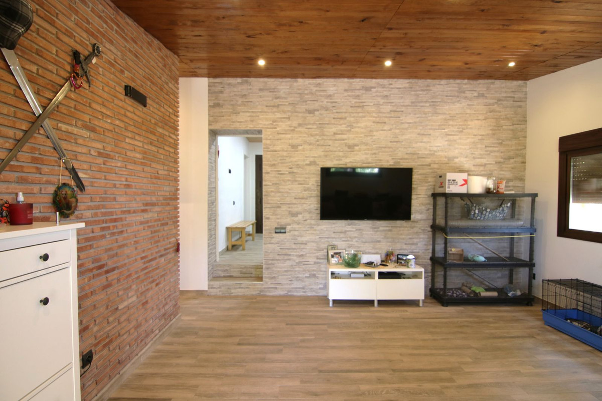 Spacious open-plan living-dining room, renovated bathroom with built-in wardrobe and shower, dressing room, pantry, games room, glazed terrace with bar and laundry room. It has 3 fireplaces and air conditioning in the living room and master bedroom.