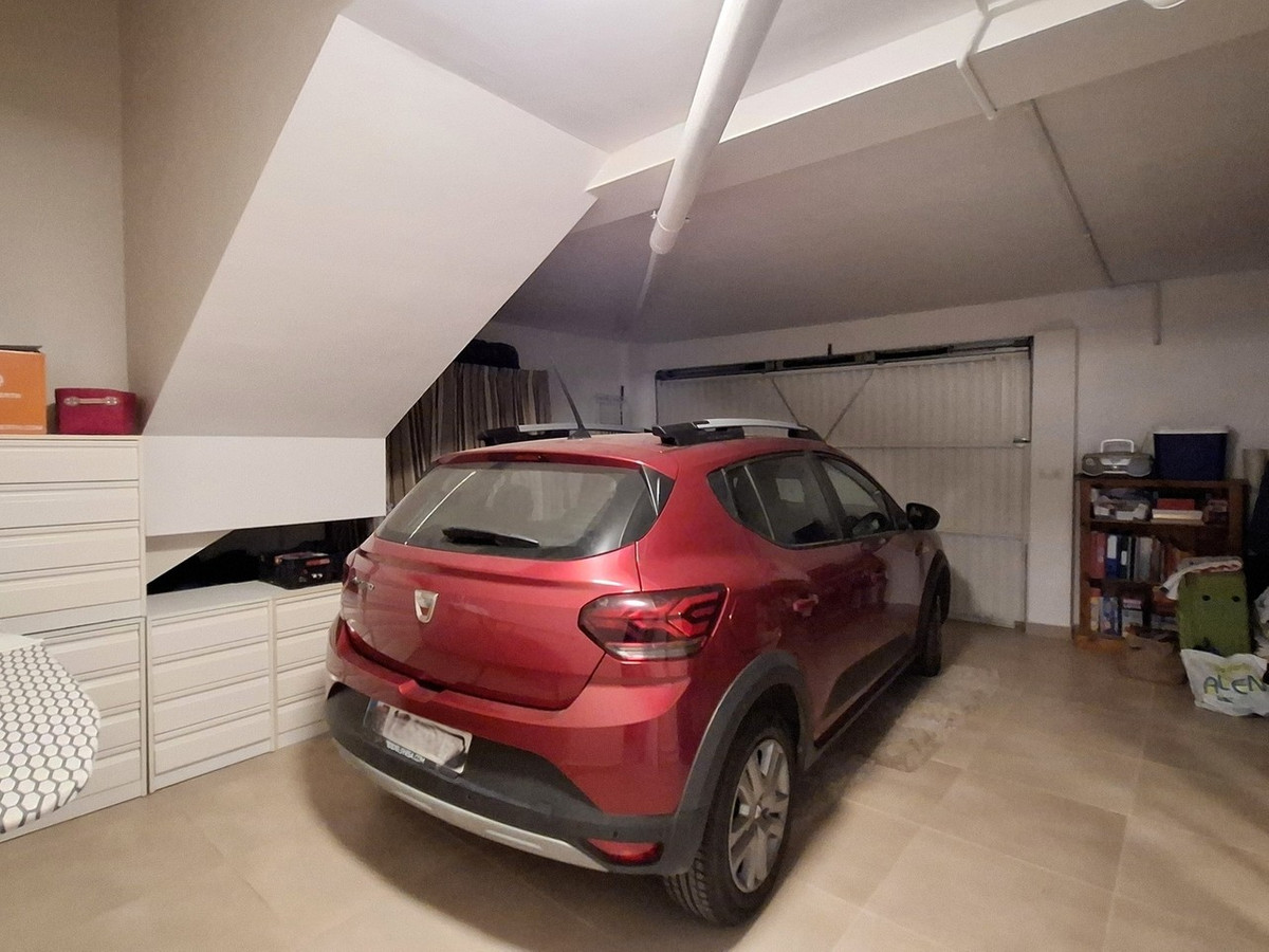 A substantial space currently configured partly as a garage and partly as a multi-functional den or recreational area, offering excellent flexibility for storage, hobbies, or additional living/office space.