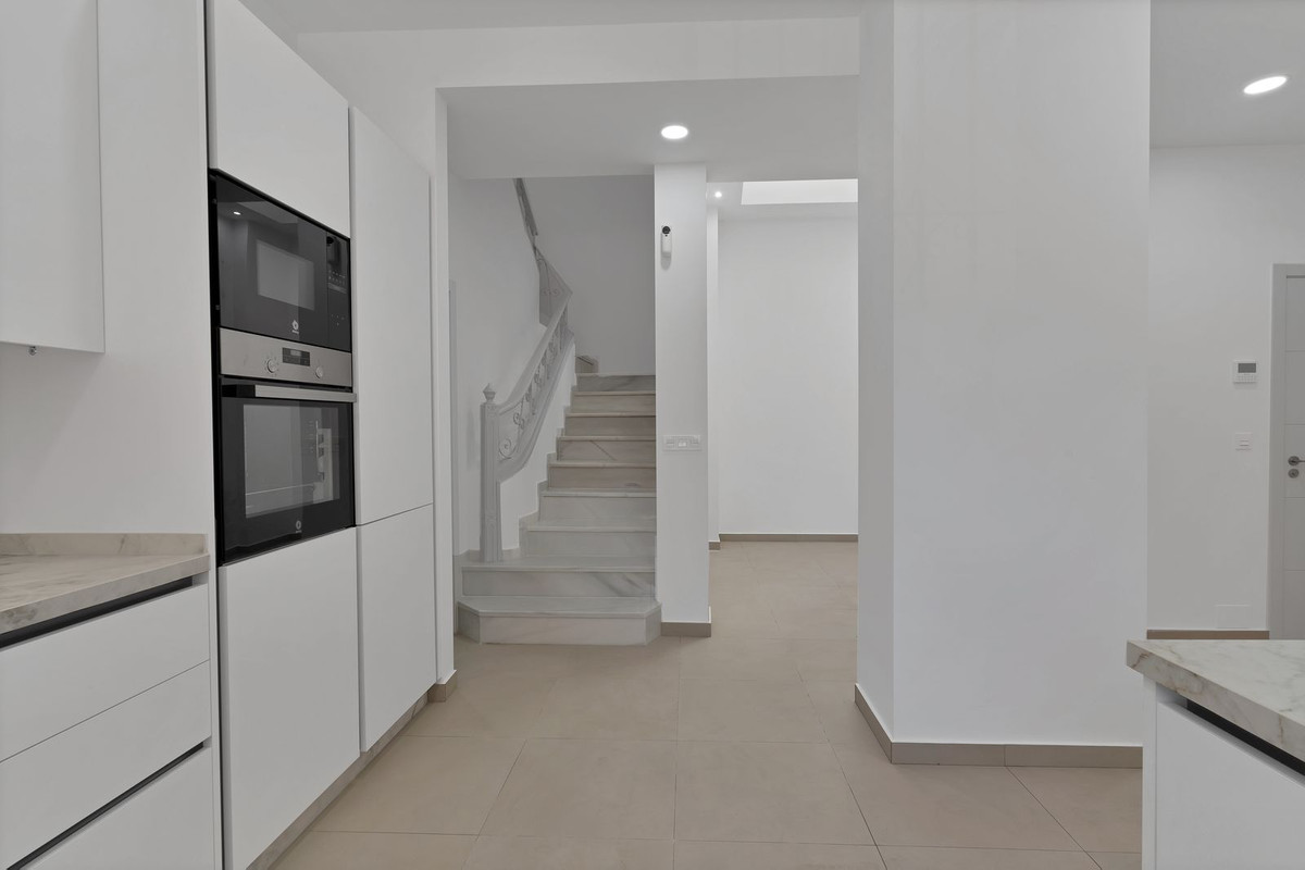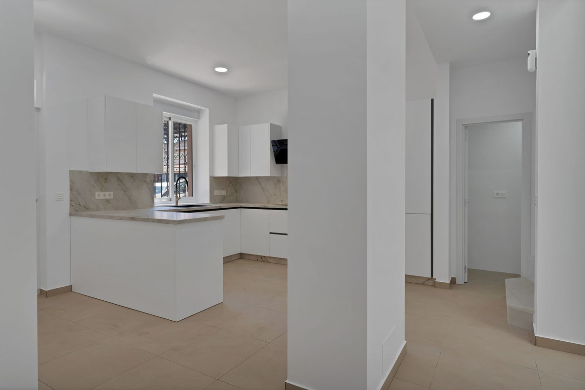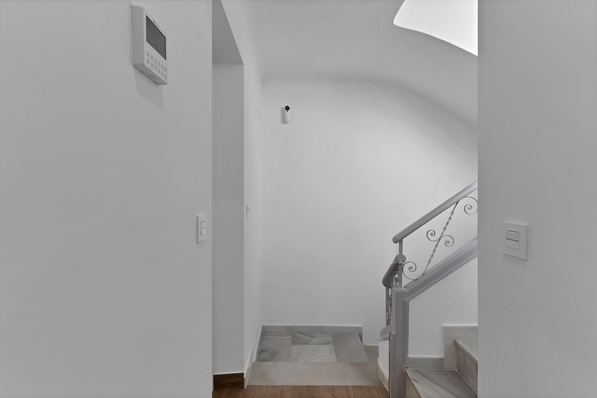 Discover this magnificent, fully renovated townhouse located on Salamanca's market square in the heart of Malaga. With a floor area of 1,700 sq ft, this property combines the old-world charm of a 1940s building with unparalleled modern comfort. Ideal for large families or those who love to entertain, it has six spacious bedrooms, including three elegant suites. Each bedroom is equipped with built-in wardrobes and closets, offering optimal storage space.