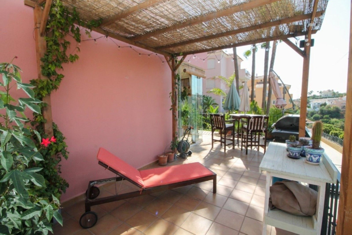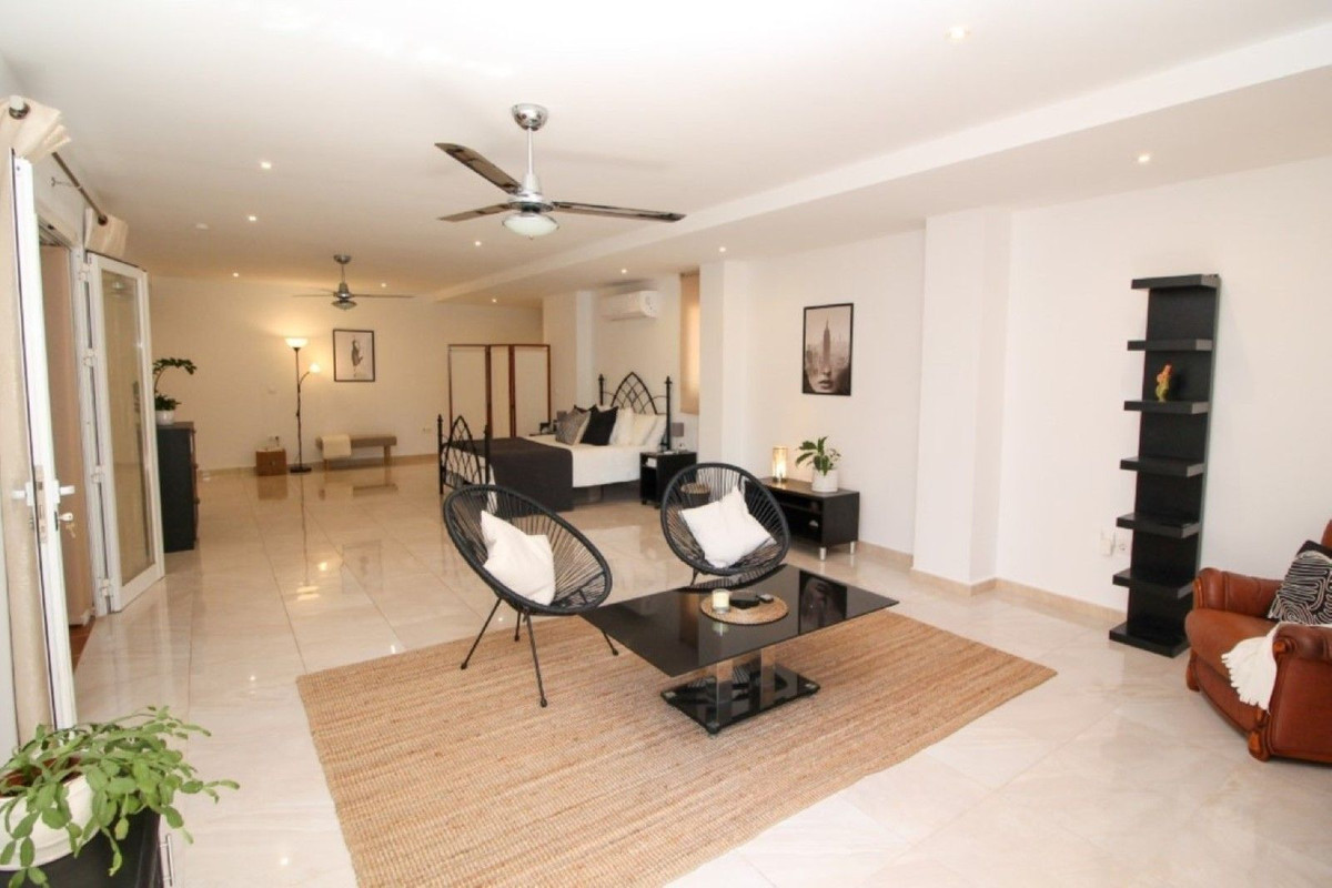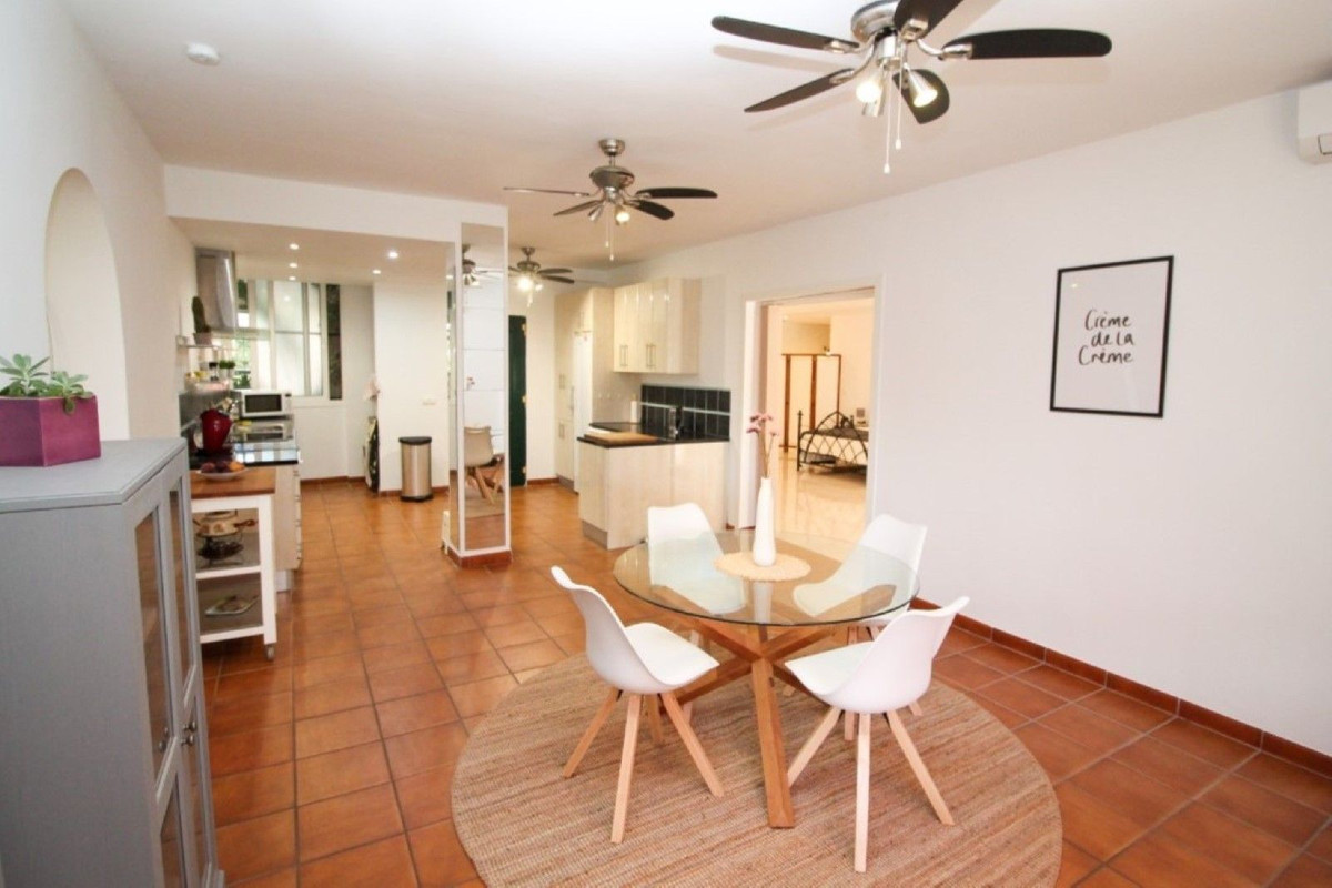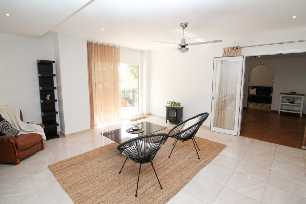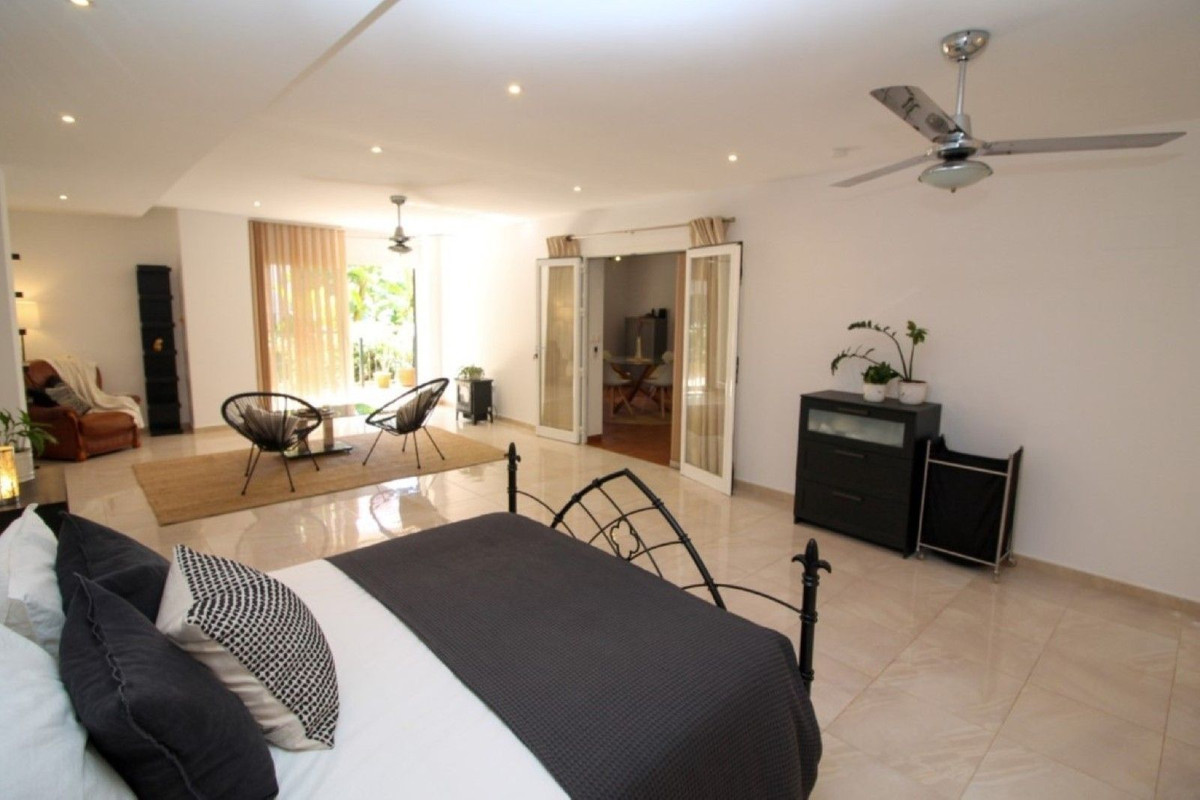 This truly unique and one-of-a-kind property offers an extraordinary living experience. Originally a 2-bedroom, 2-bathroom ground-floor apartment, the current owners have transformed the space by incorporating two adjoining areas, creating a magnificent 3-bedroom home spanning an impressive 294 m², including 105 m² of wrap-around terraces. Surrounded by lush tropical gardens, this fabulous property is nestled within the exclusive gated community of Zafiro de Miraflores, providing a serene and secure lifestyle. The entrance hall leads to the fully equipped utility room, a large lounge area, two double bedrooms both with fitted wardrobes and terrace access, en-suite bathroom and guest bathroom. The large dining area is separated by elegant glass partition doors and seamlessly connects to the open-plan, fully fitted kitchen, ideal for entertaining and family living. From this area access to a further 65m2 area consisting of a huge master bedroom with walk in wardrobe and second lounge area with patio doors leading to the terraces. The 105 m² of wrap-around terraces, surrounded by tropical gardens, provide an ideal setting for outdoor dining, lounging, or simply enjoying the beautiful surroundings. Just a 10-minute walk from Miraflores Golf Club, 10 minutes from the beach, and a 5-minute drive to La Cala de Mijas, this property offers unparalleled convenience. Marbella is also just 15 minutes away. Completed in 2006, Zafiro de Miraflores is a highly sought-after development known for its beautifully maintained communal areas, including a large swimming pool and tropical gardens. With easy access to supermarkets, shops, bars, restaurants, and the beach, everything you need is within close reach. This property comes with underground parking and a large storeroom.