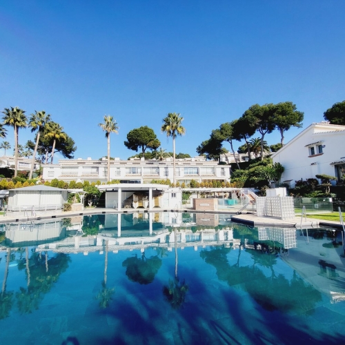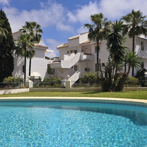 We are delighted to offer this lovely duplex town house in the very convenient location of Miraflores Resort. The property comprises:- Spacious lounge with open fireplace and dining area leading onto large terrace, fully fitted kitchen, master bedroom with en-suite bathroom and dressing room, two further bedrooms, family shower room and cloakroom. Sunny orientation. Lovely communal swimming pool with a bar and restaurant and sub-tropical gardens. Further features includes: additional patio, 24 hours security. Being sold fully furnished. Walking distances to the beach and bus stop.
