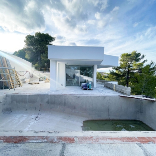 The home boasts 212 m² built on a plot of 693 m² and is distributed over two levels. On the main floor, we find two double bedrooms, each with its own en-suite bathroom, as well as a bright dining-living room that connects directly with the upper terrace, where pleasant views of the Mediterranean can be enjoyed. On the lower floor, there is a third independent bedroom with a complete bathroom and direct access to the pool area, an ideal space for guests or even to create a private apartment with total privacy.