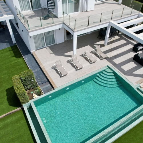 The villa is luxuriously furnished and finished with top-quality materials. The terrace and veranda complement the areas around the garden and private pool so that the mild climate can be enjoyed all year round.