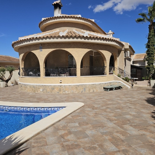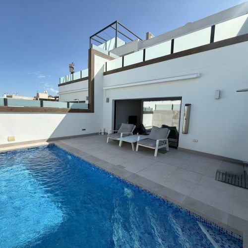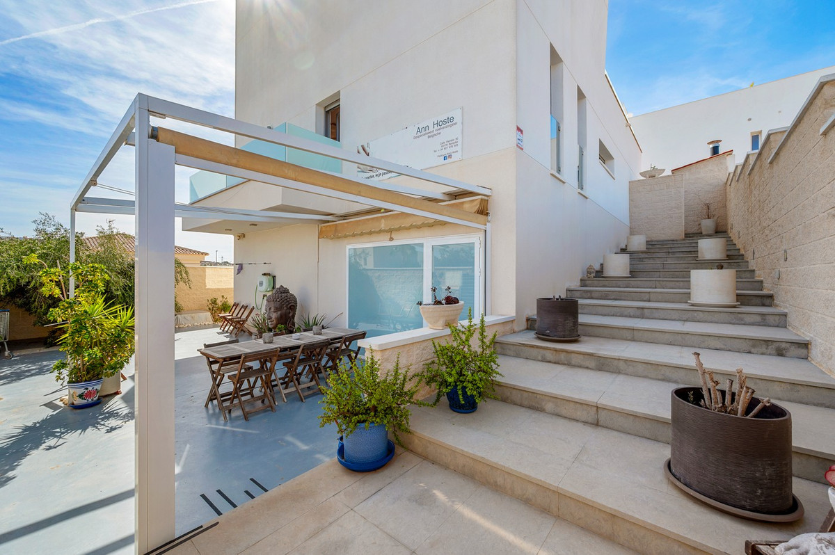 This impressive villa in Benijófar combines luxurious living with practical possibilities. The top floor features a very spacious master bedroom, a large dressing room, and a generous bathroom. The bedroom opens onto an extensive terrace, perfect for sunbathing or enjoying the views.