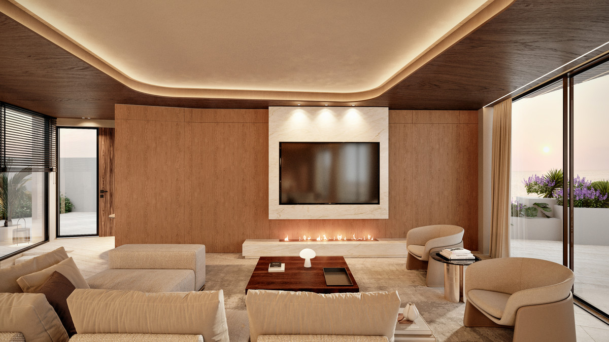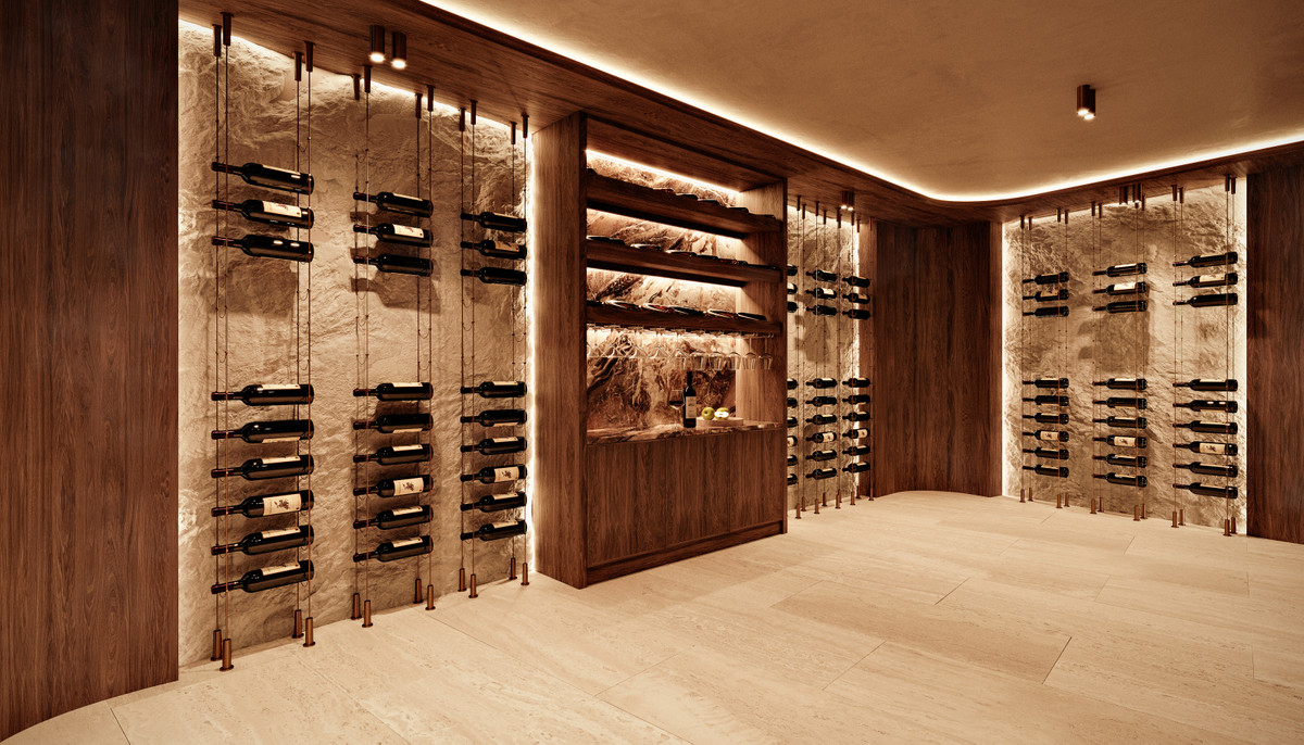 Villaen tilbyder også en hel sektion dedikeret til underholdning, inklusive en hjemmebiograf med XXL-skærm, en klimakontrolleret vinkælder med barområde, der indbyder til socialisering og nydelse. Dette rum er perfekt til afslapning med venner og familie eller til at nyde en stille aften i ejendommens privatliv, mens det integrerede belysningssystem tilføjer et strejf af raffinement til stemningen, både indendørs og på de overdækkede terrasser.