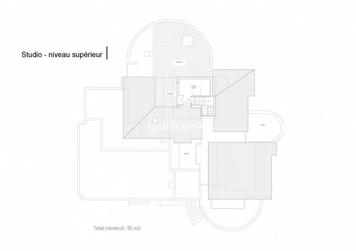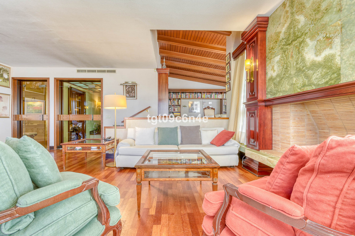 Hall-distributor and large bright living room, open to a very large terrace-solarium of more than 100m2. Elegant onyx fireplace. Attached to the living room we find a cozy reading room, with sloping ceilings and wooden beams.