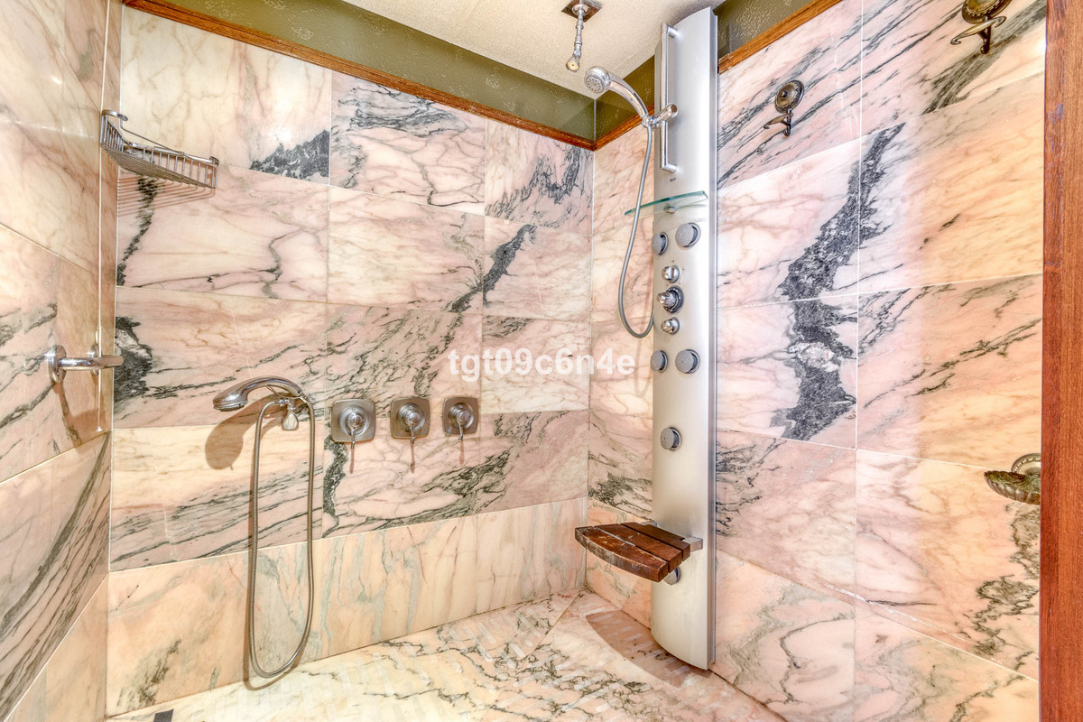 Elegant and cozy master suite, with a luxurious pink marble bathroom, a modern separate shower room and access to a semicircular terrace-viewpoint that borders a Cordoba-style light well; another en-suite bedroom, also with a shower room and access to the terrace and a third en-suite bedroom, with a bathtub and a window to the terrace, although without direct access to it. All the rooms in the house have built-in wardrobes and there are also wardrobes in the access corridors.