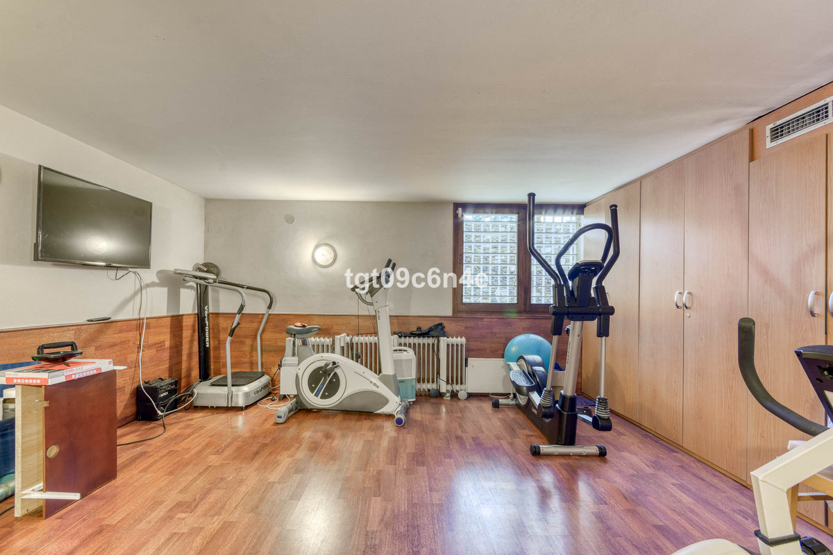 On the lower floor we find 3 en-suite rooms (bathrooms with bathtubs) that overlook the patio, although they do not have direct access to it; a multipurpose room with fitted wardrobes, which is currently used as a gym.