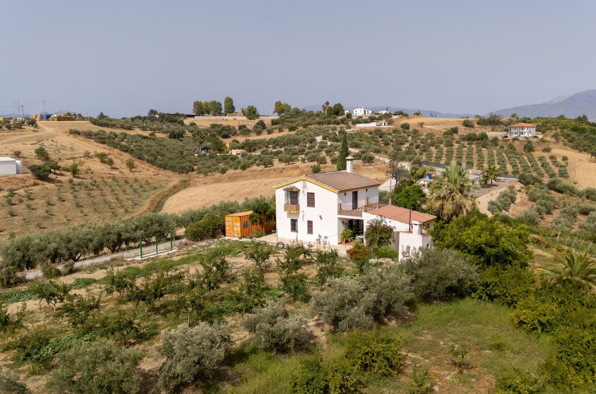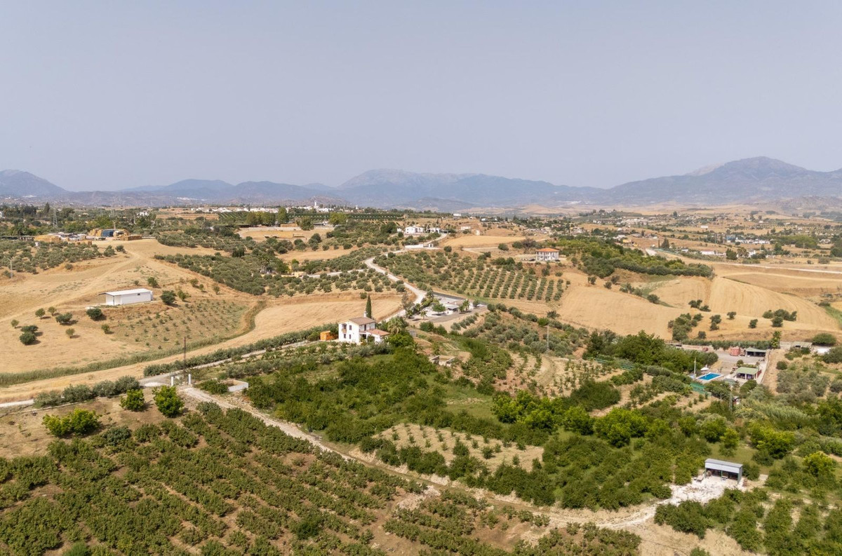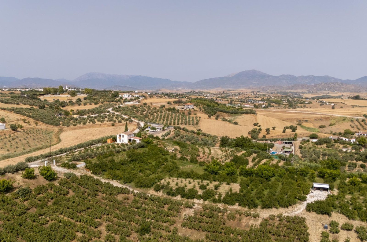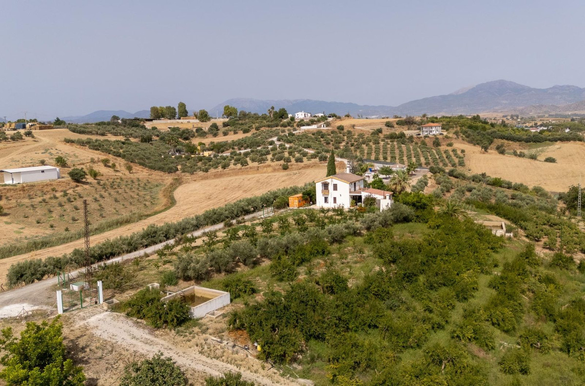 Wonderful finca with almost 50,000 m2 of land, totally fenced, with 5 different entrances, water from its own well plus irrigation water from the canal such us two algibes/ water deposits. T he land is divided into several terraces and planted mainly with pear and pomegranate trees, as well as olive, walnut, lemon, and orange trees. Within the farm, a two-story house was built in 2005 which has three bedrooms, two bathrooms, a living room with a fireplace, and a fitted kitchen. A spacious covered porch entrance and a separate 30 m2 storage room. An ideal property for lovers of the countryside and tranquility, 25 minutes from Malaga and 10 minutes from the town of Cártama.