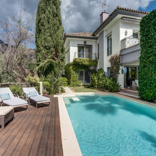 Discover this impeccably maintained villa in the desirable Bello Horizonte - Lindasol neighborhood, located at Calle Hacienda Cortes, 10. Perfectly oriented south for abundant natural light and warmth, this property is in very good condition and ready for immediate enjoyment. Ideal for those seeking a serene yet luxurious lifestyle on the Costa del Sol, it combines private outdoor spaces with essential modern amenities, ensuring comfort and security year-round.
