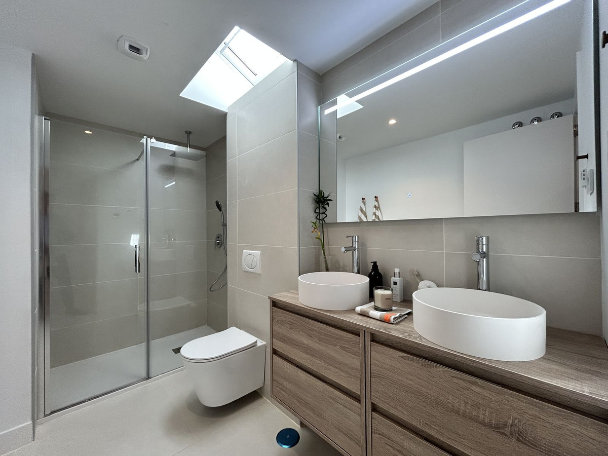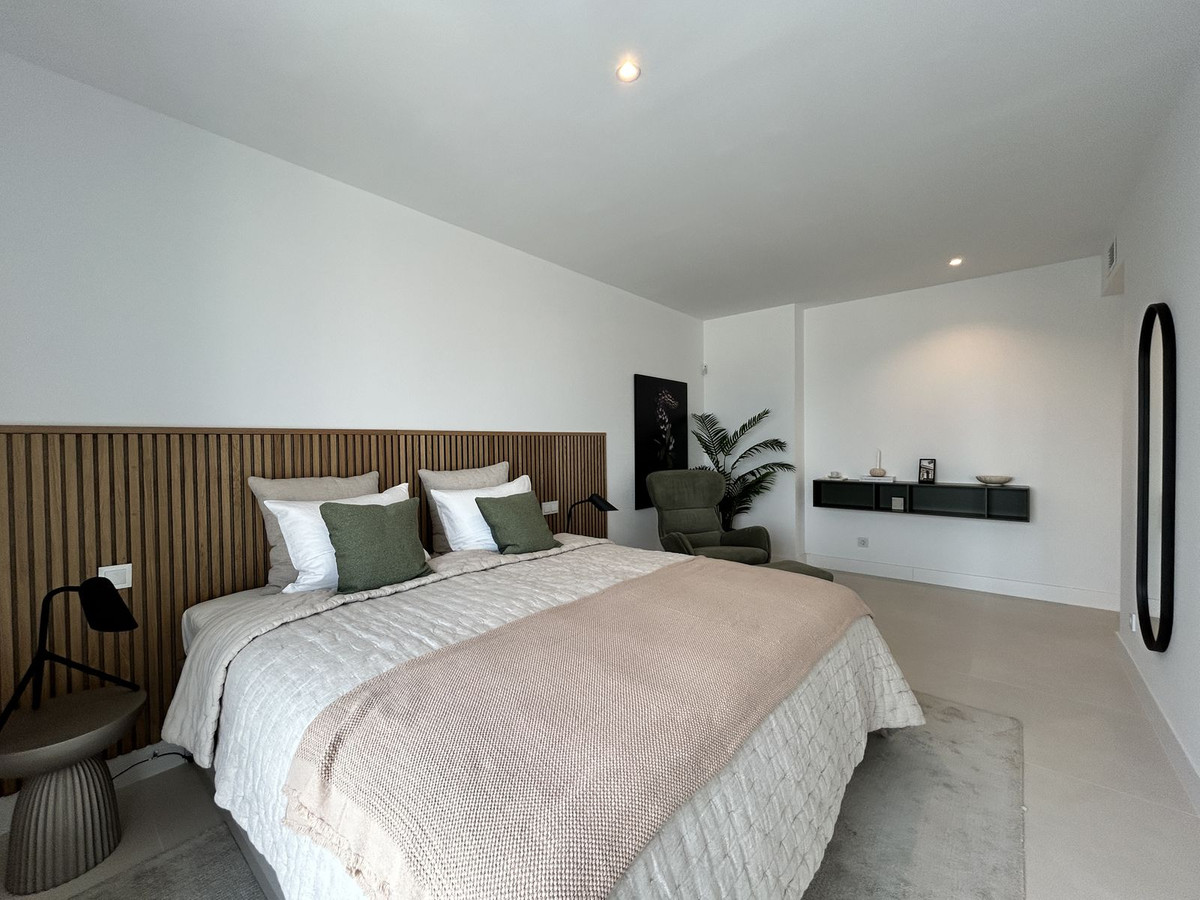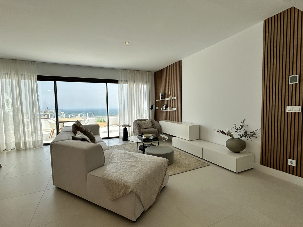 This exclusive, brand-new penthouse with three bedrooms and a large south-facing terrace with sea and mountain views is fully furnished with high-end designer pieces by Ikonia Ilusion&Arte, which stands out for its thoughtful lighting and maximum sense of spaciousness.