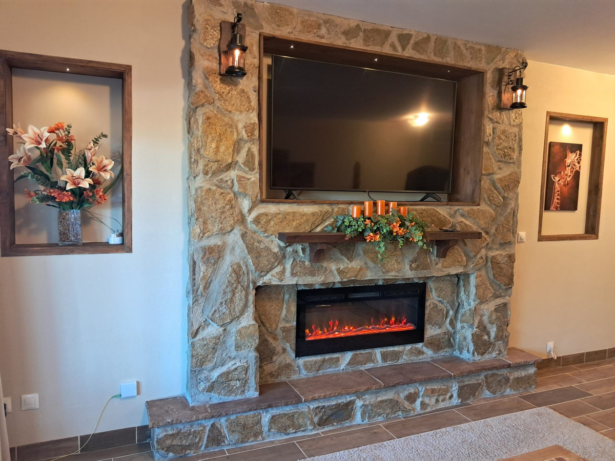 The apartment comprises two well-proportioned bedrooms and two modern bathrooms, including a stylish en-suite, as well as a guest toilet for added convenience. The open plan, fully fitted kitchen is equipped with high-quality appliances and is complemented by a separate utility and laundry room. The dining area flows seamlessly into the living space, which features a welcoming fireplace and direct access to the covered terrace, ideal for alfresco dining or relaxing in the Mediterranean climate. The property is offered fully furnished, with optional furniture packages available, and is in excellent, recently renovated condition.