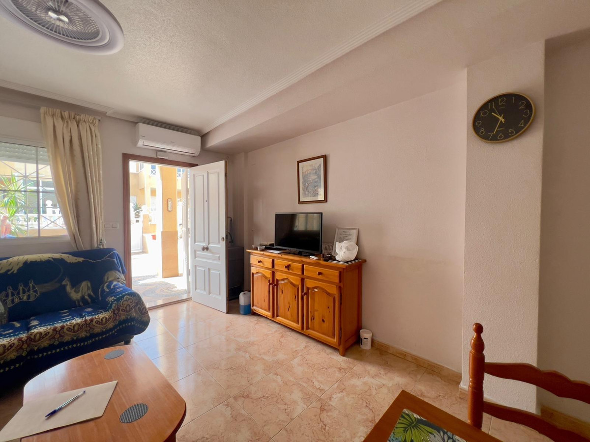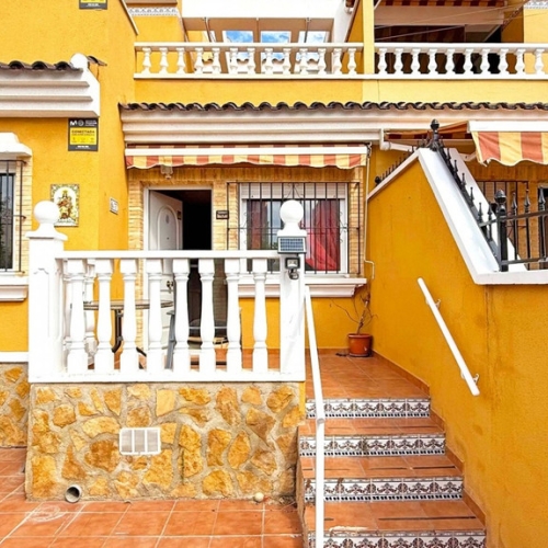 ???? Cozy home in a residential complex with pool, just minutes from the center of Torrevieja~~This property is perfect both as a permanent residence and as a holiday home. It is located in a quiet residential area with a communal pool and gardens, on the outskirts of Torrevieja but just a short walk from the city center and all services.~~✨ Main features:~???? Private tiled garden of 25 m², ideal for gatherings or sunbathing~????️ Ground floor with living room, fitted kitchen, back patio and guest toilet~????️ First floor with 2 bedrooms and a full bathroom with bathtub~☀️ Private solarium to enjoy the Mediterranean climate all year round~~A complete and comfortable home with outdoor spaces to enjoy with family and friends.~~???? Strategic location: quiet yet well connected, close to supermarkets, schools, public transport, and only minutes away from the beaches of Torrevieja.~If you are looking for a ready-to-move-in home in a well-kept environment with a pool, this is your opportunity!