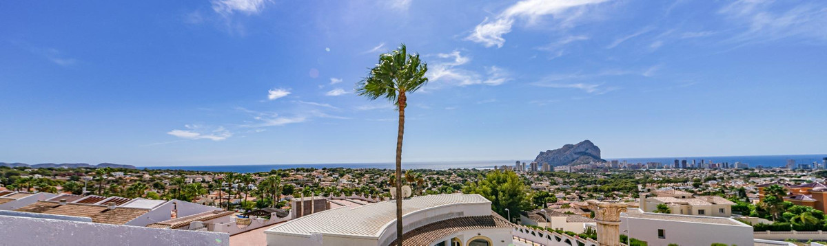 This apartment is part of a residential complex with 200 homes, located approximately 10 minutes from the center of Calpe and the sea. The apartment features a spacious bedroom, a full bathroom, a semi-open kitchen, and a living/dining room. From the living room, you can access a large terrace with stunning views of the sea and the Peñón (rock), and from this terrace, you can go up to a 23 m² solarium.