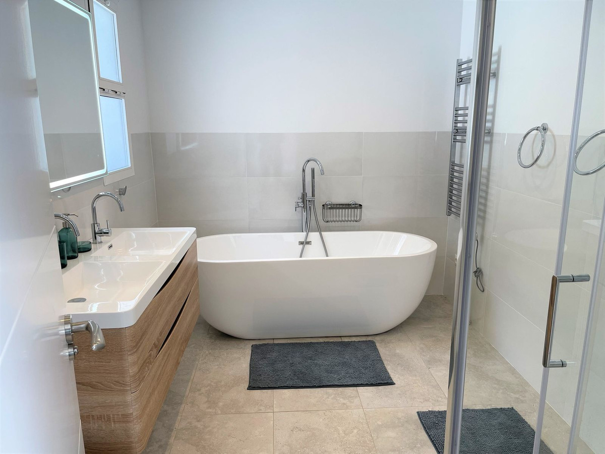 * Main house: 4 spacious double bedrooms and 3 full bathrooms on one level (approx. 230m2), with direct access to the pool from 3 bedrooms, without any steps!