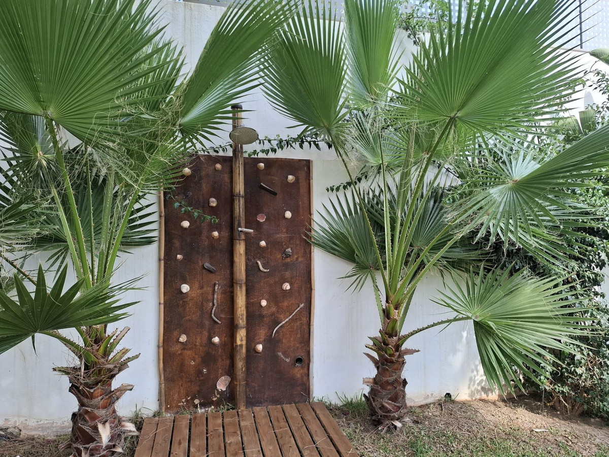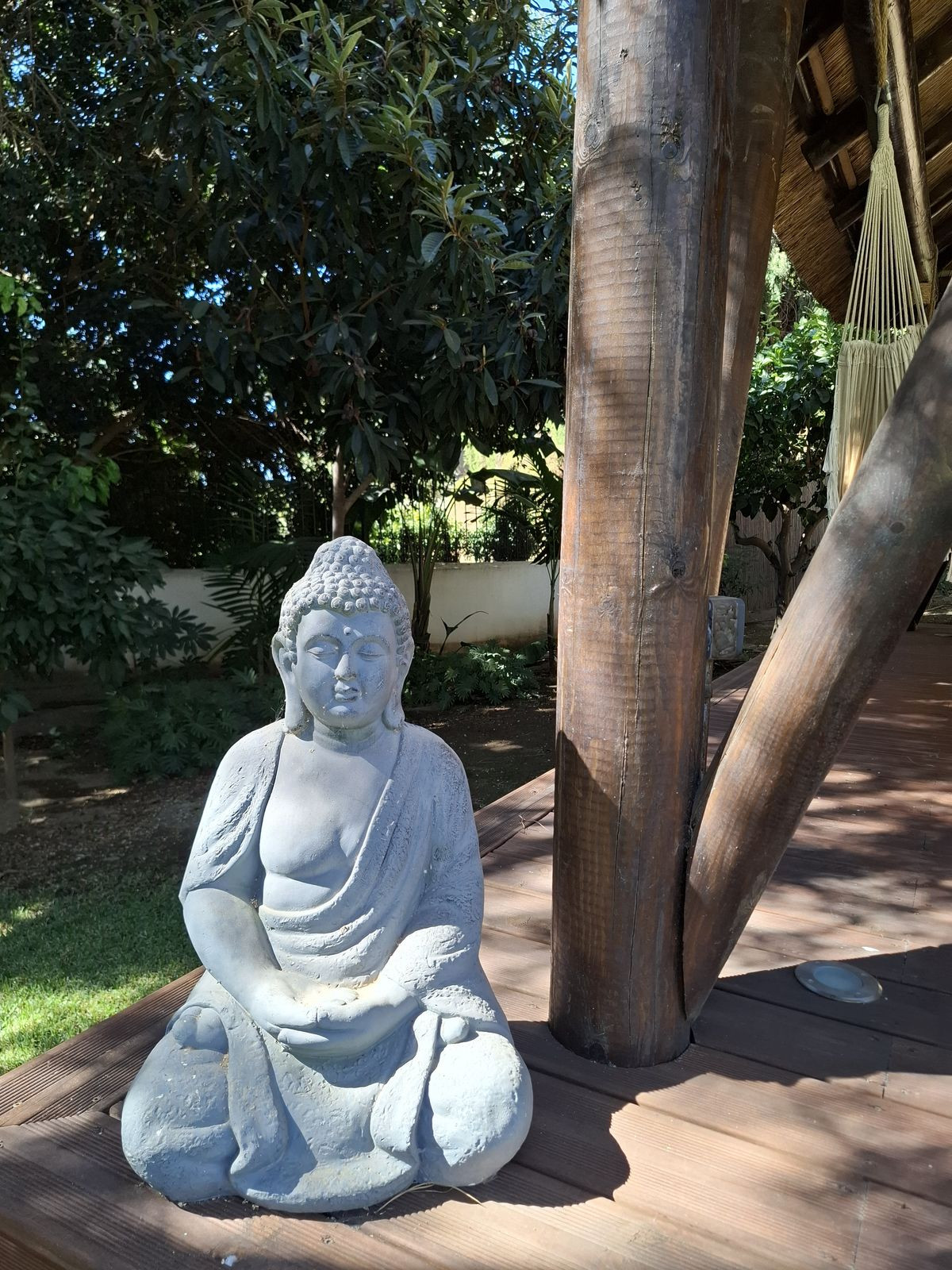 Downstairs, with its own entrance and direct access to the lush garden we find the very spacious 70m2 private studio apartment, featuring a full kitchen, bathroom with shower, washing machine, lounge area with pull-out couch, 2 single beds, and air conditioning.