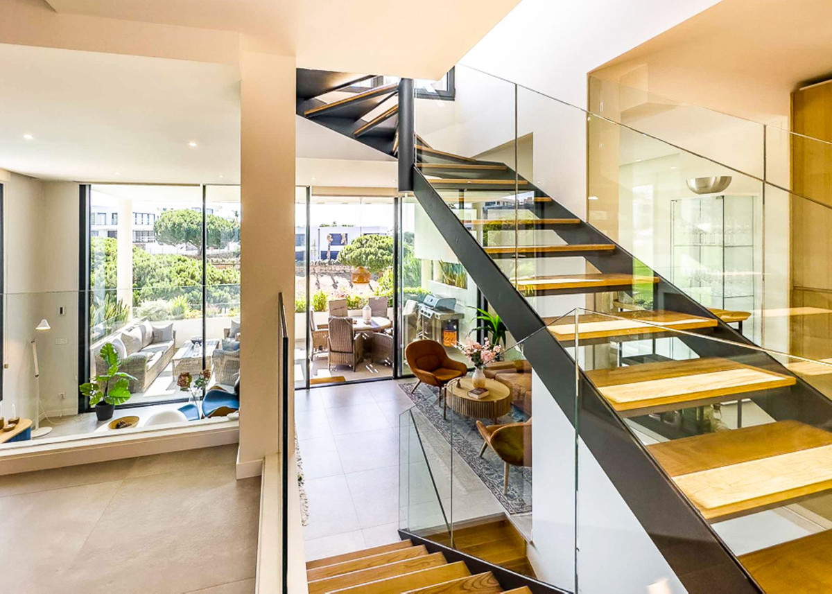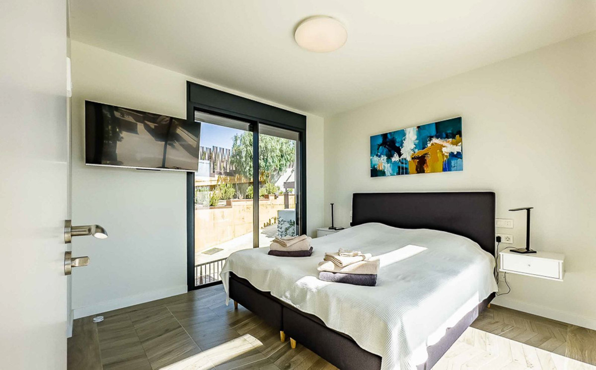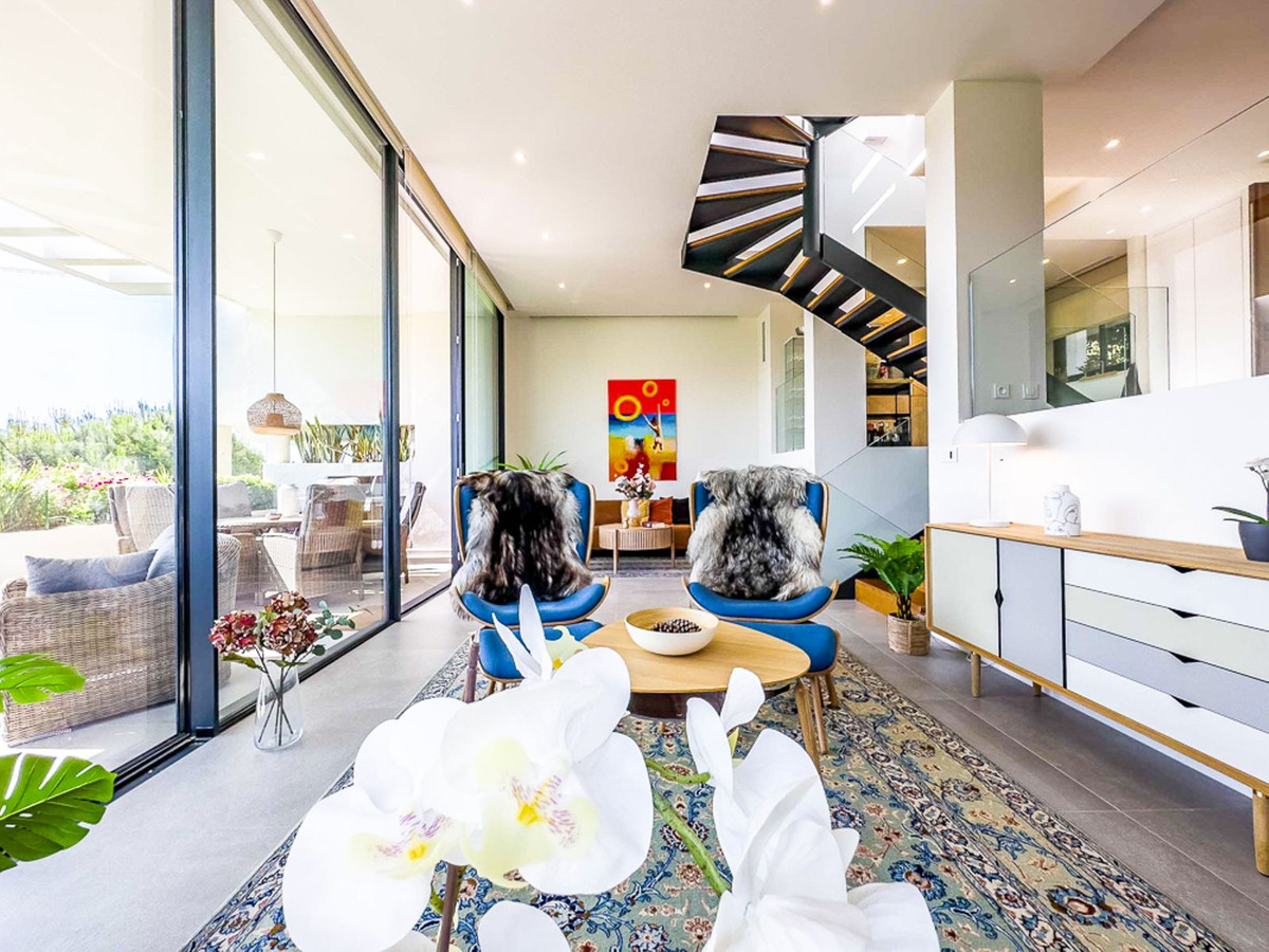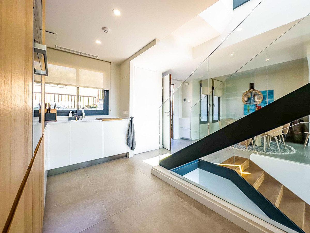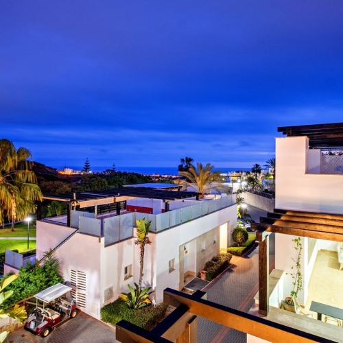 Fordelt på tre etager og 181 m² byder huset på lyse rum, gulv-til-loft vinduer og en fantastisk udsigt over Middelhavet, golfbanen og bjergene. Det har tre rummelige soveværelser med badeværelser en suite, et fuldt udstyret køkken, åbne stue- og spisestueområder, privat pool samt flere terrasser på i alt 160 m² — inklusiv en tagterrasse til uforglemmelige solnedgange.