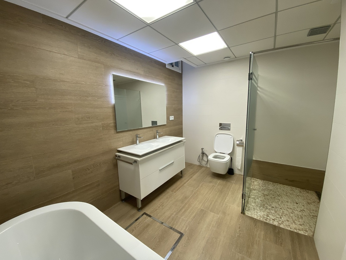Ascending to the first floor, you'll discover two generously proportioned bedrooms, two bathrooms, and access to charming balconies. The crowning jewel of this luxury villa is the top-floor 70m² solarium, providing an unparalleled vantage point to savor panoramic views.