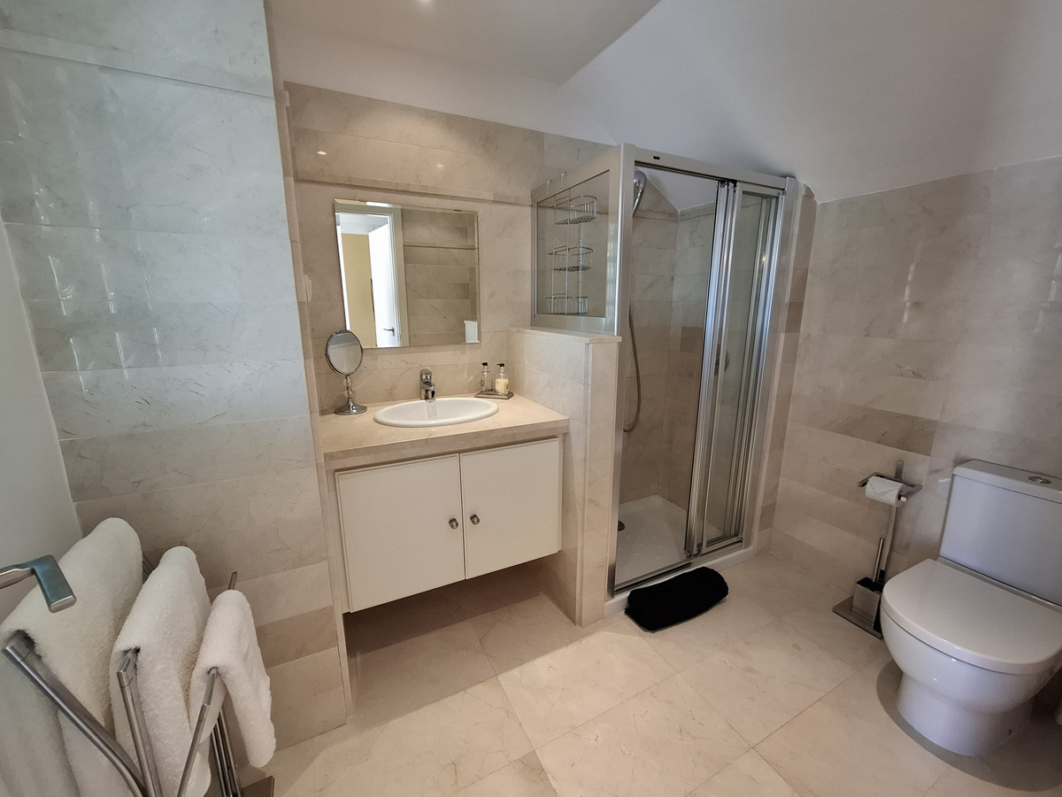 Each of the three generously proportioned bedrooms is a sanctuary of comfort and style, bathed in natural light and thoughtfully designed to evoke a sense of calm and retreat. The master suite and second bedroom both feature elegant en-suite bathrooms, finished with premium fixtures, walk-in showers, and sleek marble accents—perfect for moments of indulgence and privacy.