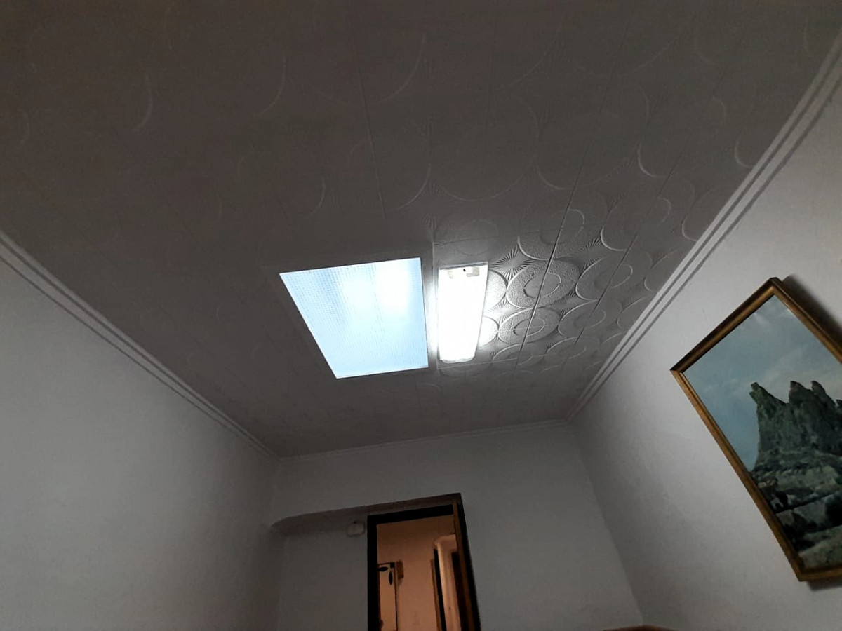 Upstairs, the property opens to a generous living room featuring a wood-burning stove, perfect for relaxing on cooler evenings. From here, you have direct access to a private roof terrace – an ideal space for sunbathing, entertaining, or simply enjoying the views over the surrounding rooftops and countryside.