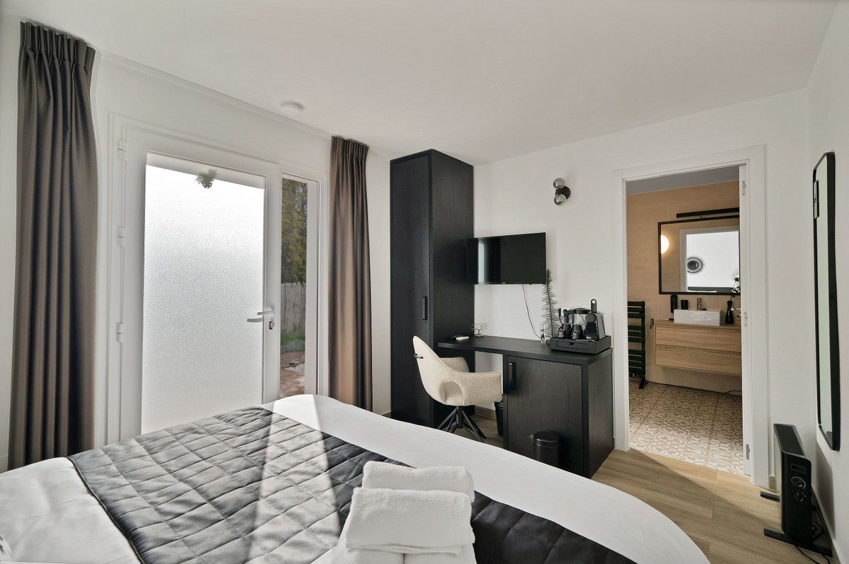 Beautifully maintained gardens and patios that create a lush, relaxing atmosphere.