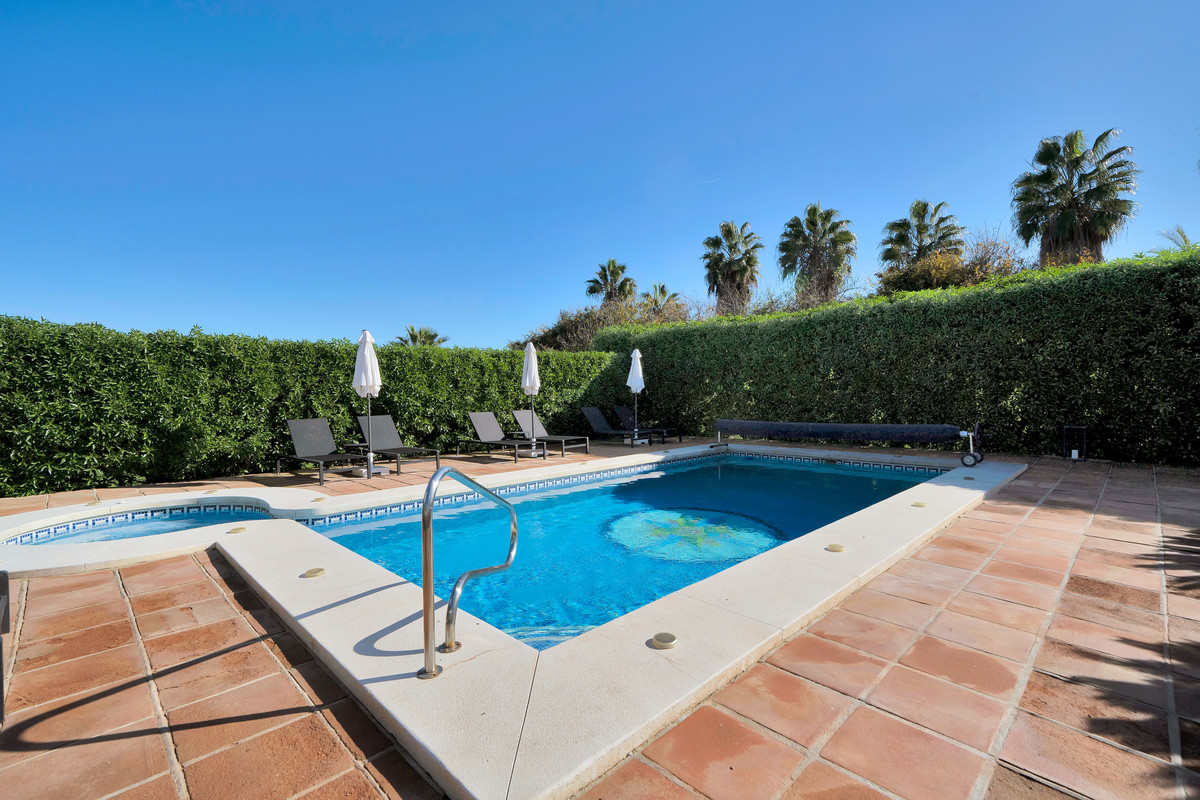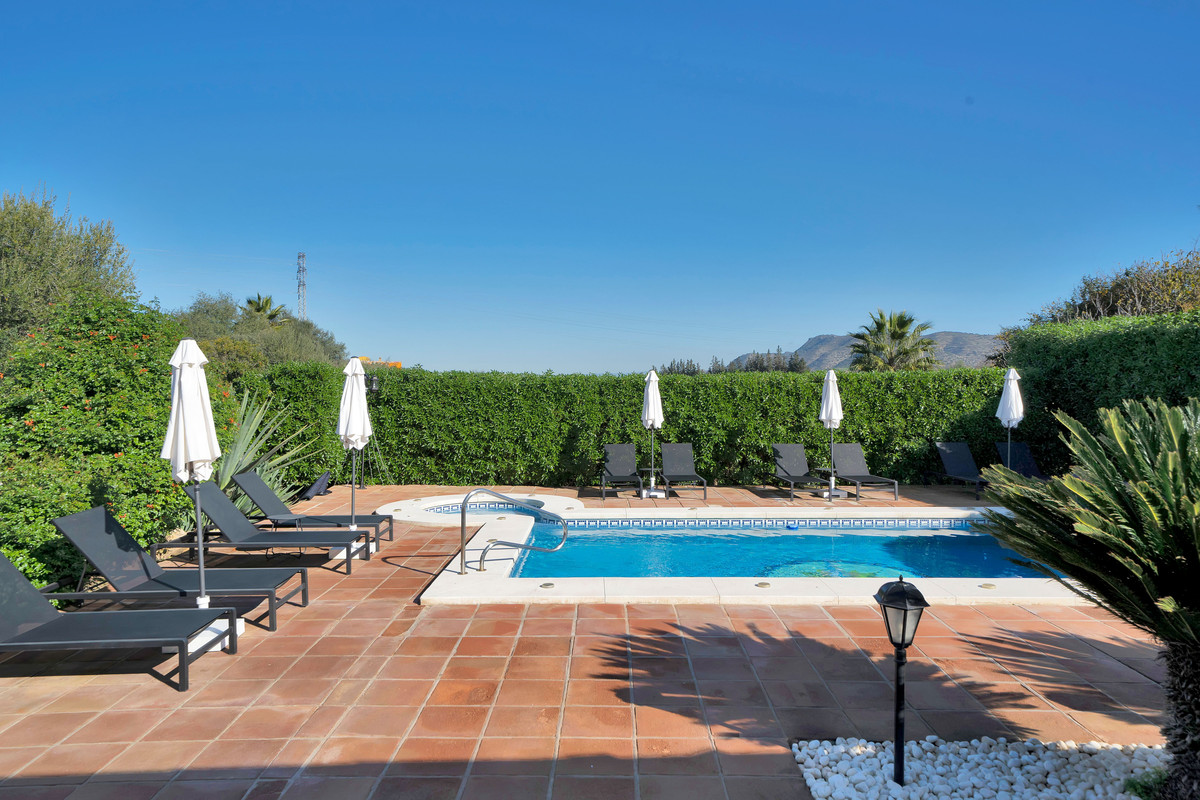 A private swimming pool with a solarium area to enjoy the sunny Costa del Sol weather.