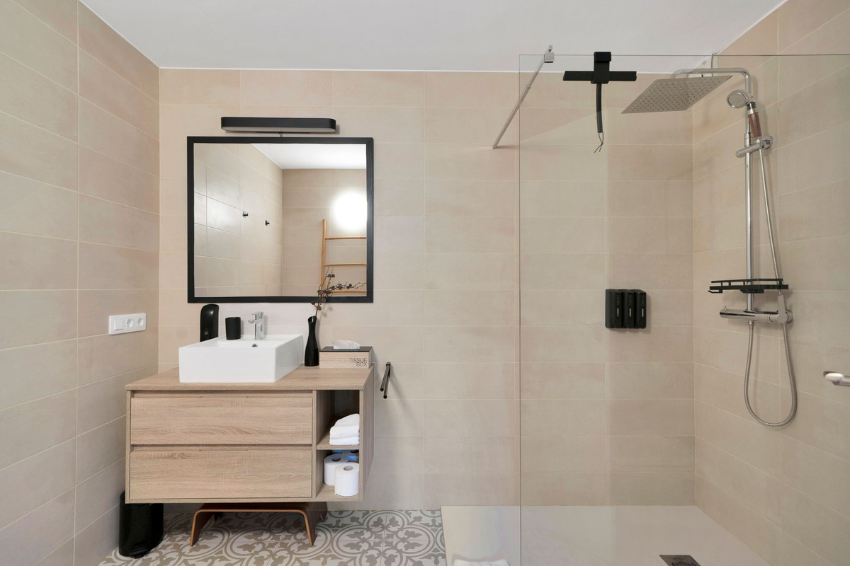 The lower floor offers 4 bedrooms, each with its own en-suite bathroom, ensuring privacy and comfort. It also includes a living room and a modern kitchen, making it ideal for gatherings or as additional space for family or guests.