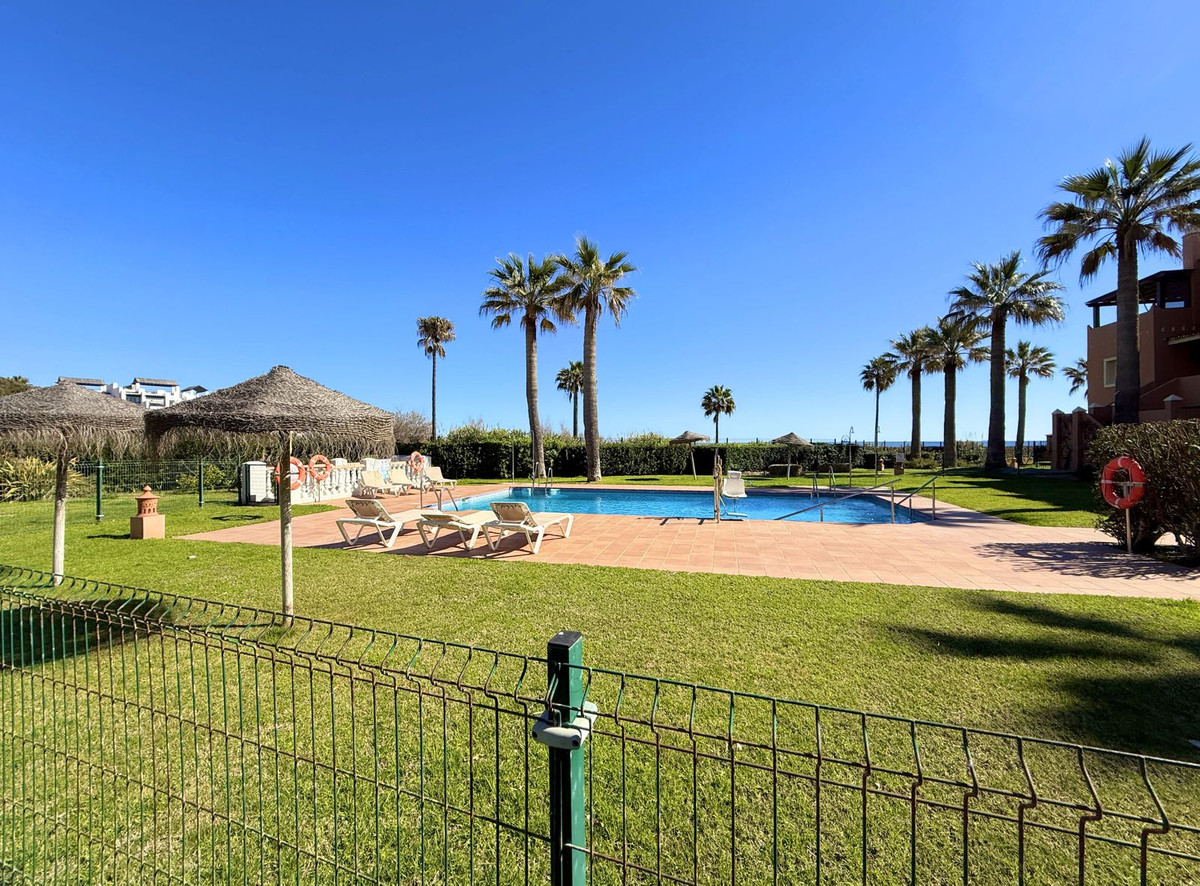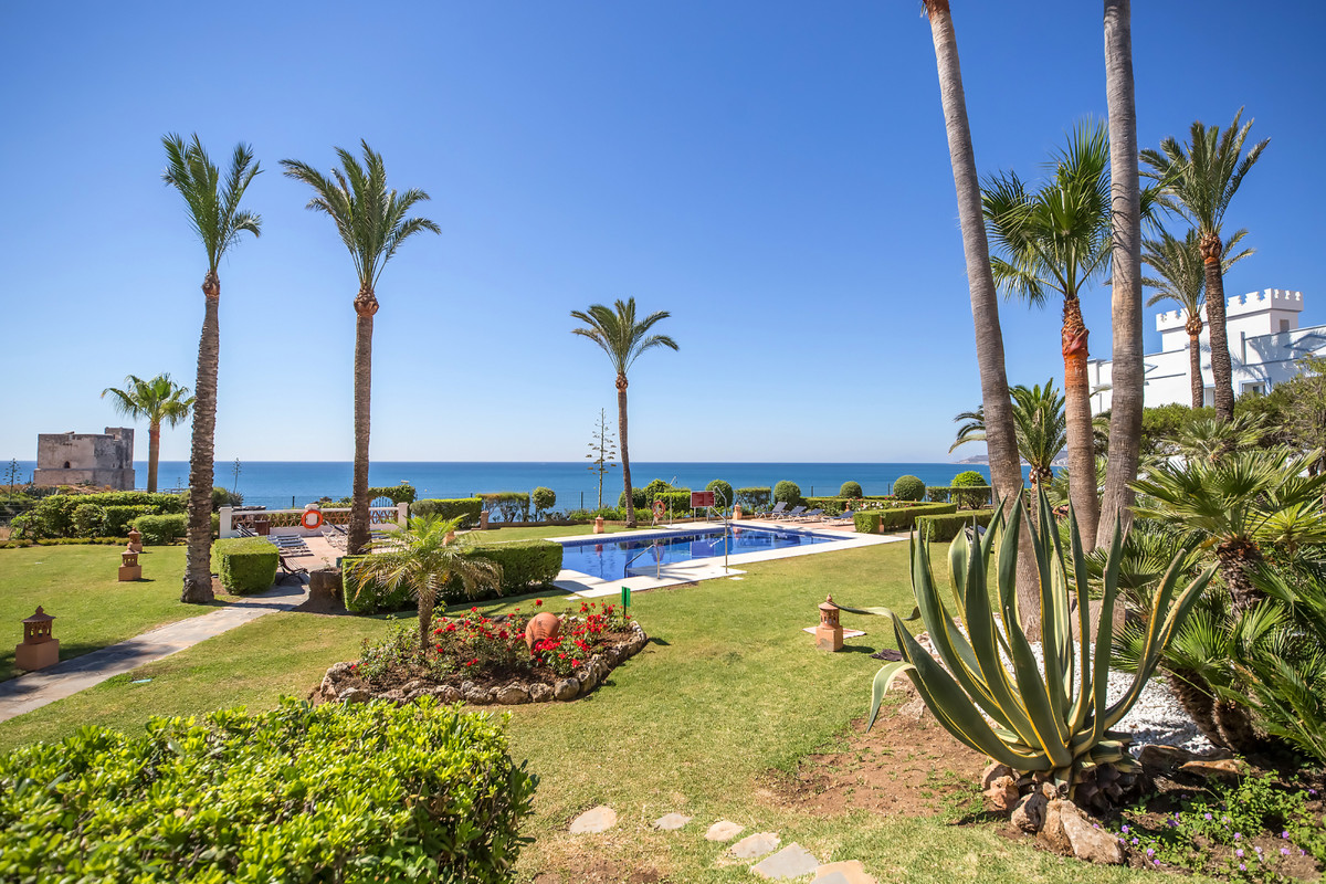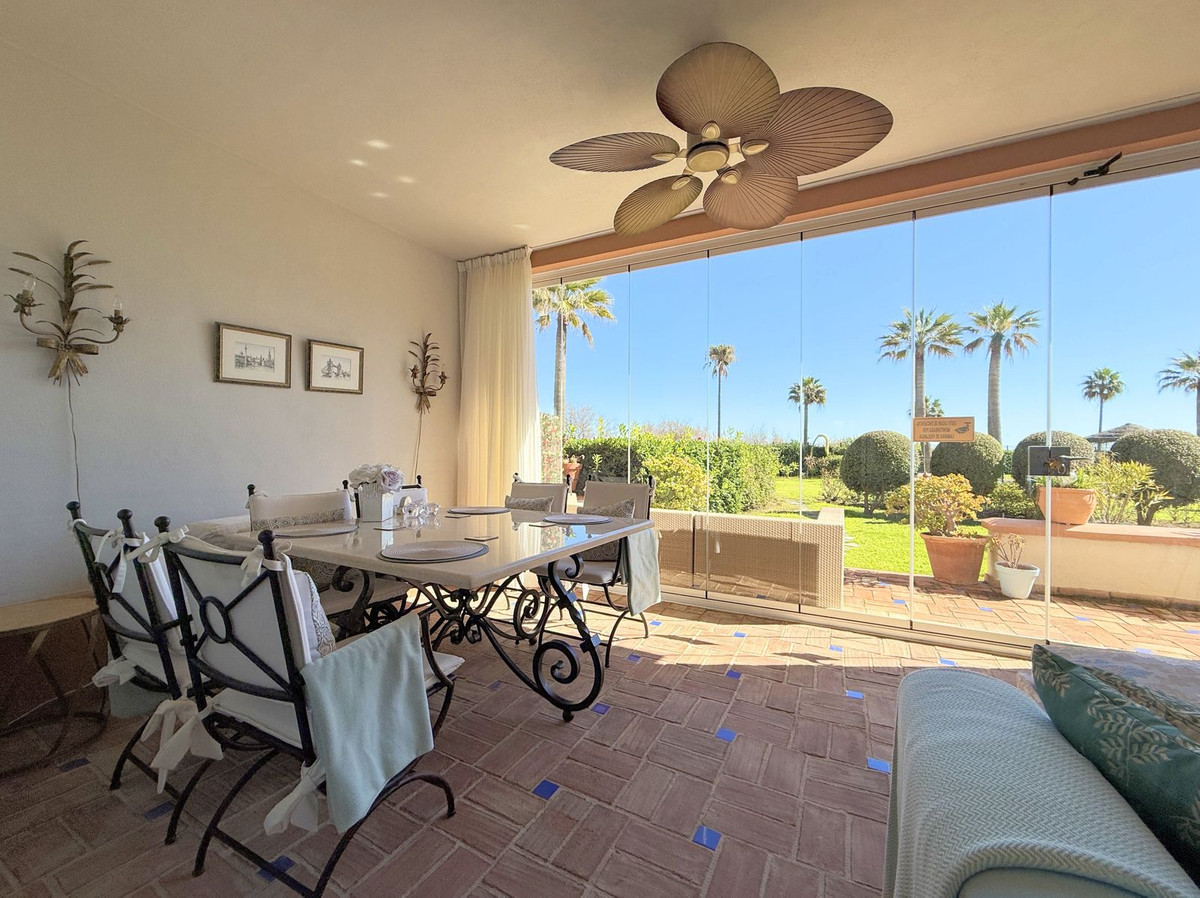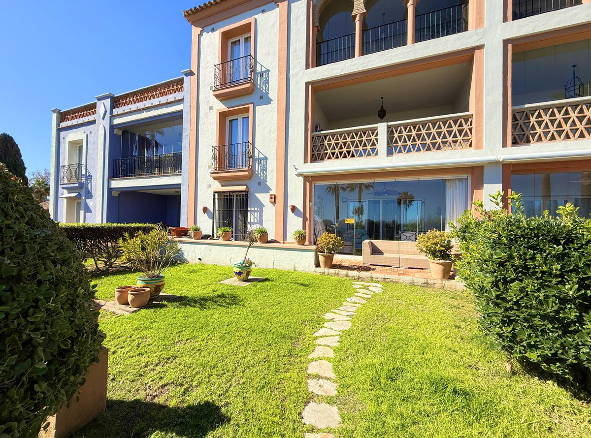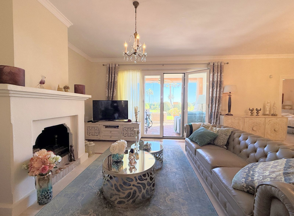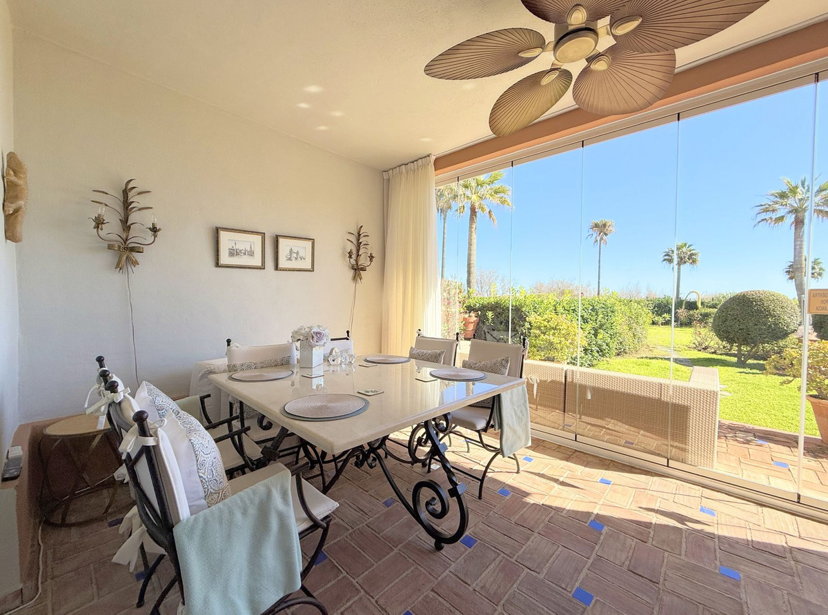Magnificent apartment in a luxury complex on the beachfront, with a terrace and private garden, located in Casares Playa, within a prestigious development featuring a charming Moorish design inspired by the essence of Al-Andalus. Enjoy direct access to the promenade and the stunning local beaches, with a wide selection of restaurants, beach bars, and leisure areas. Situated in a privileged location between Estepona and Puerto de la Duquesa, just a five-minute drive from both, it offers the perfect combination of exclusivity, comfort, and Mediterranean lifestyle. Its south-facing orientation ensures abundant natural light throughout the day, creating a warm and welcoming atmosphere in every room. Recently renovated, the property stands out for its careful decoration and excellent condition, ready to move in. The kitchen, updated in 2023, features Siemens appliances, ivory-colored marble floors, and all windows fitted with mosquito screens. The apartment is all on one level, with two spacious and bright bedrooms designed for maximum comfort and rest. A cozy living-dining area with a fireplace opens onto the enclosed glass terrace overlooking the garden, the communal pool, and the beach. The development offers 24-hour security, ensuring peace of mind and privacy, as well as exclusive amenities such as two magnificent pools, one of them heated, allowing year-round enjoyment. The property also includes 2 underground parking spaces and 2 storage rooms, providing convenience and extra storage. Its strategic location makes it ideal as a permanent residence or an investment, with high potential for both holiday and long-term rentals. Close to prestigious golf courses, such as Finca Cortesín, as well as marinas, restaurants, and all necessary services, this property represents a unique opportunity. If you are looking for an exclusive apartment on the beachfront, with all the comforts in one of the most sought-after areas of the coast, don't miss this opportunity.