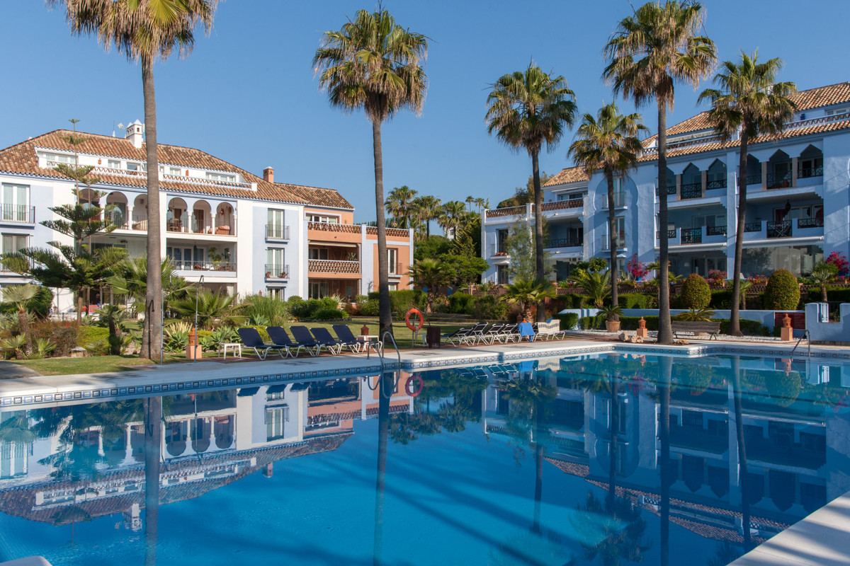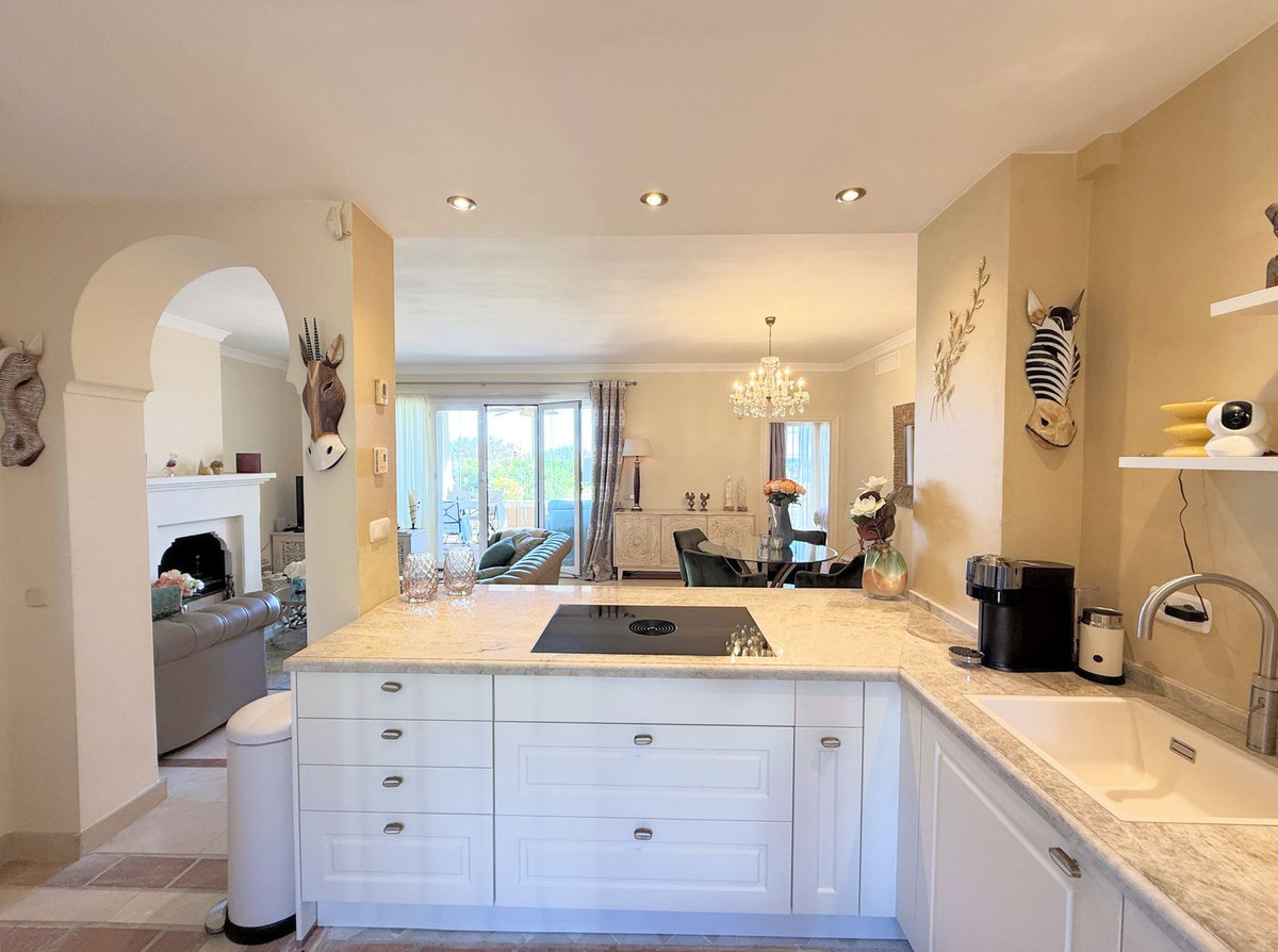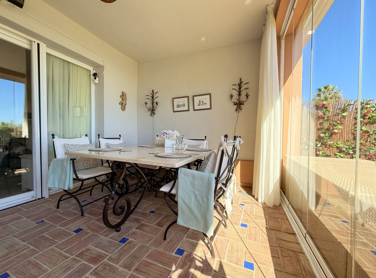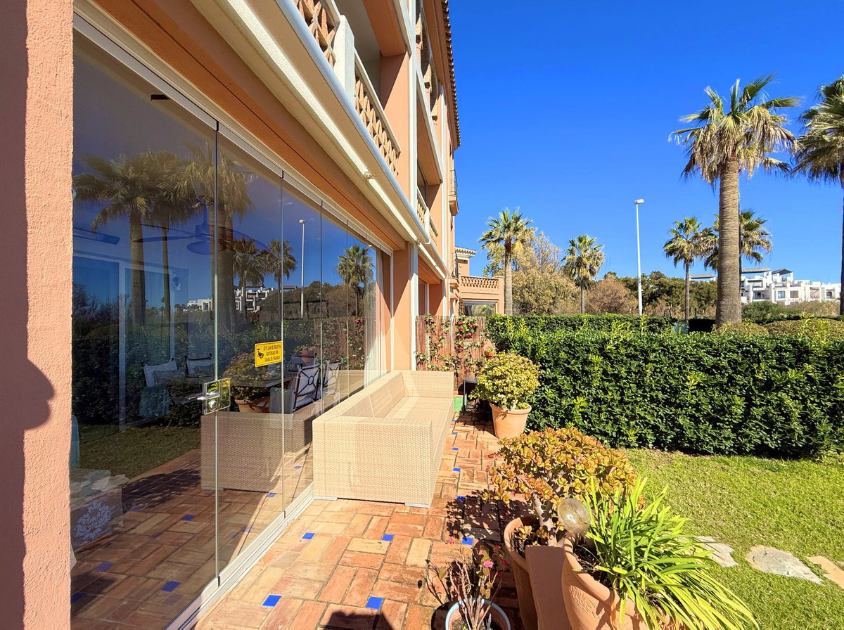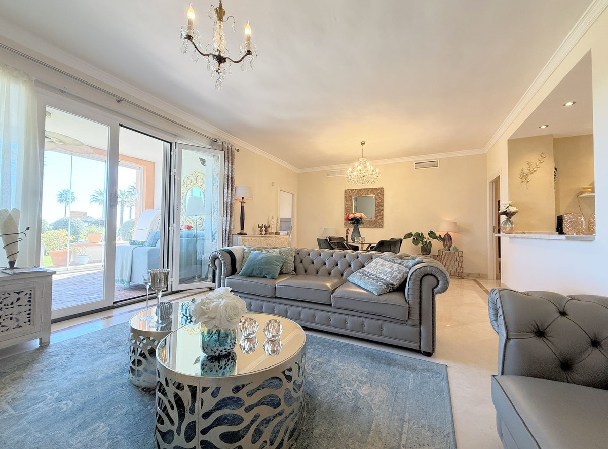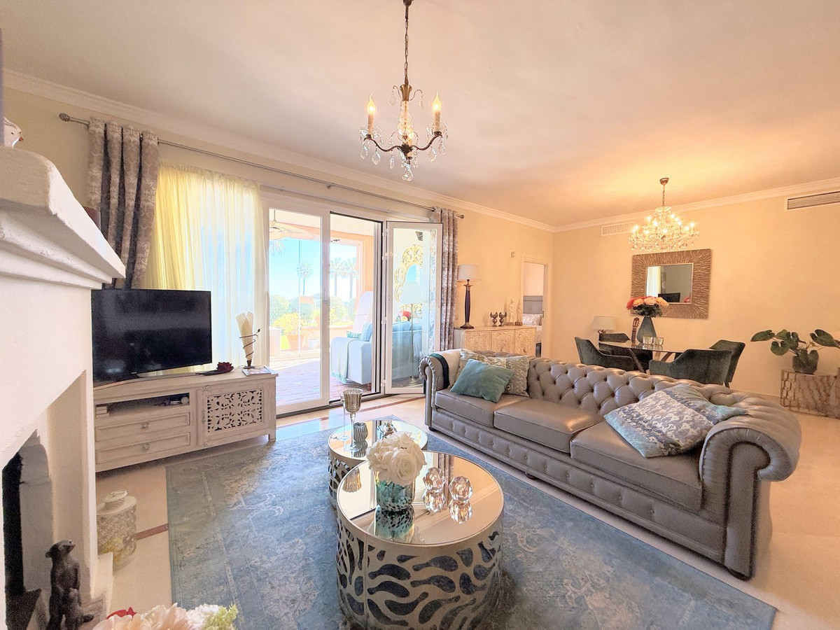 Magnificent apartment in a luxury complex on the beachfront, with a terrace and private garden, located in Casares Playa, within a prestigious development featuring a charming Moorish design inspired by the essence of Al-Andalus. Enjoy direct access to the promenade and the stunning local beaches, with a wide selection of restaurants, beach bars, and leisure areas. Situated in a privileged location between Estepona and Puerto de la Duquesa, just a five-minute drive from both, it offers the perfect combination of exclusivity, comfort, and Mediterranean lifestyle. Its south-facing orientation ensures abundant natural light throughout the day, creating a warm and welcoming atmosphere in every room. Recently renovated, the property stands out for its careful decoration and excellent condition, ready to move in. The kitchen, updated in 2023, features Siemens appliances, ivory-colored marble floors, and all windows fitted with mosquito screens. The apartment is all on one level, with two spacious and bright bedrooms designed for maximum comfort and rest. A cozy living-dining area with a fireplace opens onto the enclosed glass terrace overlooking the garden, the communal pool, and the beach. The development offers 24-hour security, ensuring peace of mind and privacy, as well as exclusive amenities such as two magnificent pools, one of them heated, allowing year-round enjoyment. The property also includes 2 underground parking spaces and 2 storage rooms, providing convenience and extra storage. Its strategic location makes it ideal as a permanent residence or an investment, with high potential for both holiday and long-term rentals. Close to prestigious golf courses, such as Finca Cortesín, as well as marinas, restaurants, and all necessary services, this property represents a unique opportunity. If you are looking for an exclusive apartment on the beachfront, with all the comforts in one of the most sought-after areas of the coast, don't miss this opportunity.