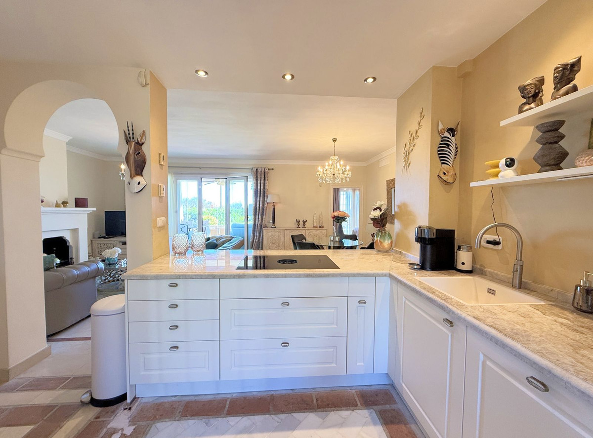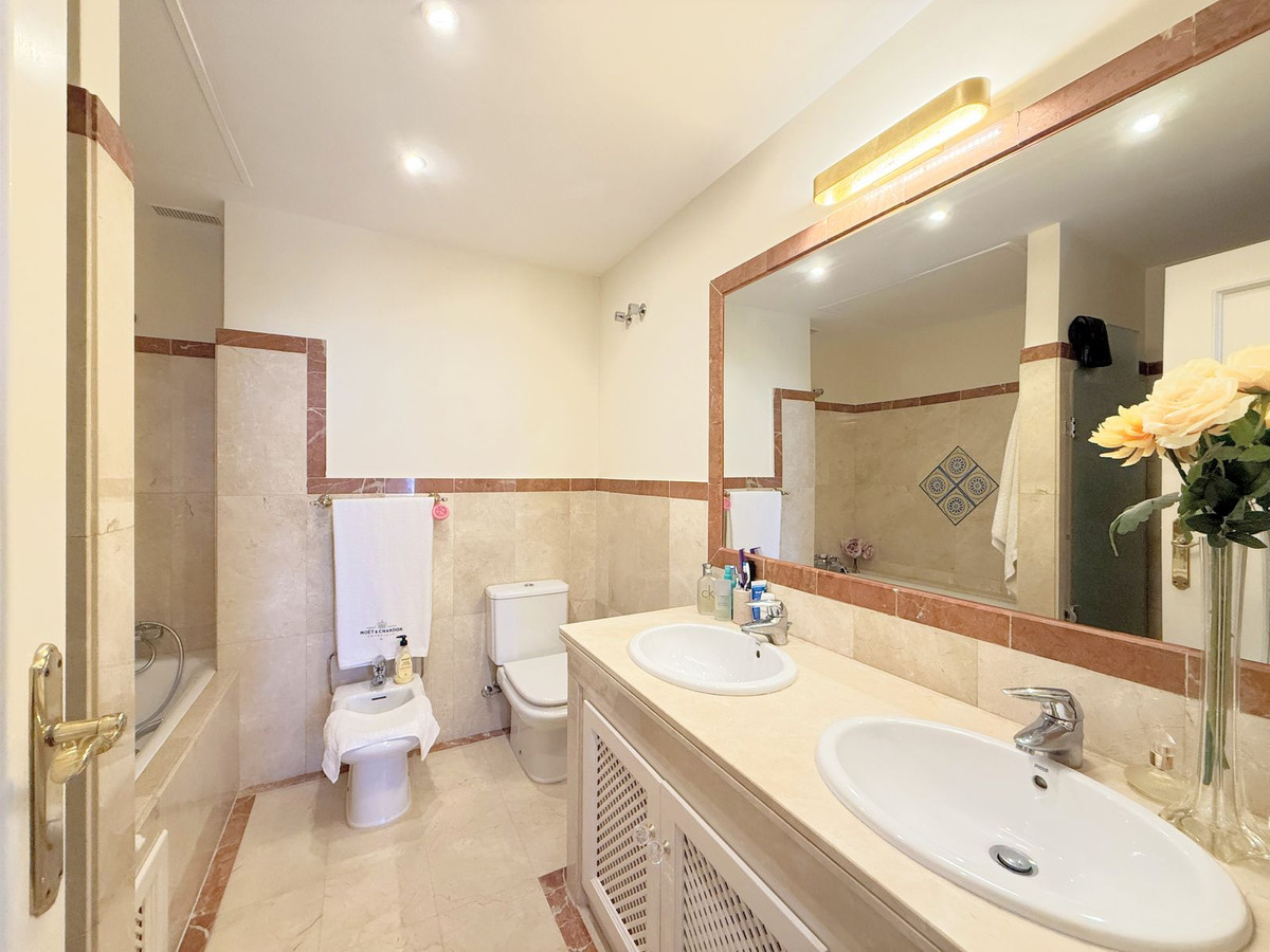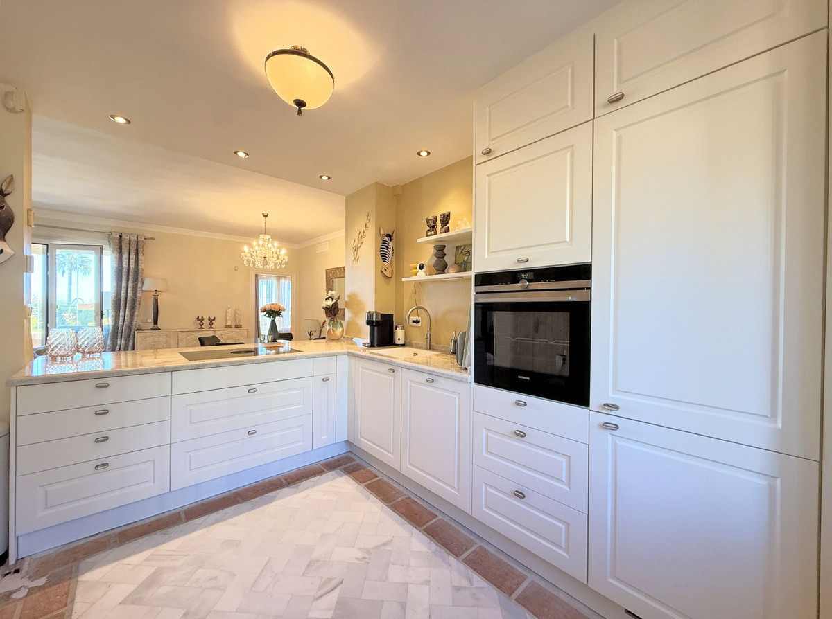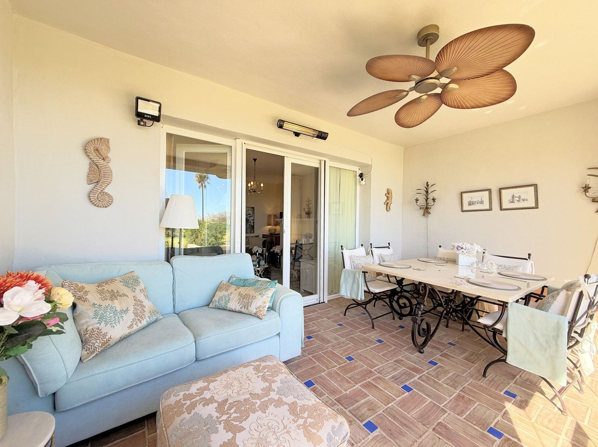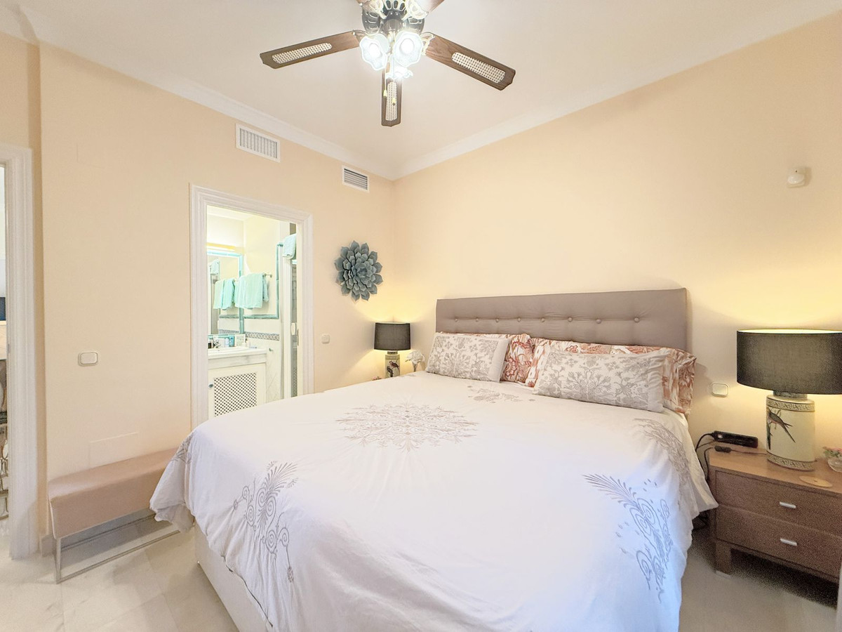 Magnificent apartment in a luxury complex on the beachfront, with a terrace and private garden, located in Casares Playa, within a prestigious development featuring a charming Moorish design inspired by the essence of Al-Andalus. Enjoy direct access to the promenade and the stunning local beaches, with a wide selection of restaurants, beach bars, and leisure areas. Situated in a privileged location between Estepona and Puerto de la Duquesa, just a five-minute drive from both, it offers the perfect combination of exclusivity, comfort, and Mediterranean lifestyle. Its south-facing orientation ensures abundant natural light throughout the day, creating a warm and welcoming atmosphere in every room. Recently renovated, the property stands out for its careful decoration and excellent condition, ready to move in. The kitchen, updated in 2023, features Siemens appliances, ivory-colored marble floors, and all windows fitted with mosquito screens. The apartment is all on one level, with two spacious and bright bedrooms designed for maximum comfort and rest. A cozy living-dining area with a fireplace opens onto the enclosed glass terrace overlooking the garden, the communal pool, and the beach. The development offers 24-hour security, ensuring peace of mind and privacy, as well as exclusive amenities such as two magnificent pools, one of them heated, allowing year-round enjoyment. The property also includes 2 underground parking spaces and 2 storage rooms, providing convenience and extra storage. Its strategic location makes it ideal as a permanent residence or an investment, with high potential for both holiday and long-term rentals. Close to prestigious golf courses, such as Finca Cortesín, as well as marinas, restaurants, and all necessary services, this property represents a unique opportunity. If you are looking for an exclusive apartment on the beachfront, with all the comforts in one of the most sought-after areas of the coast, don't miss this opportunity.