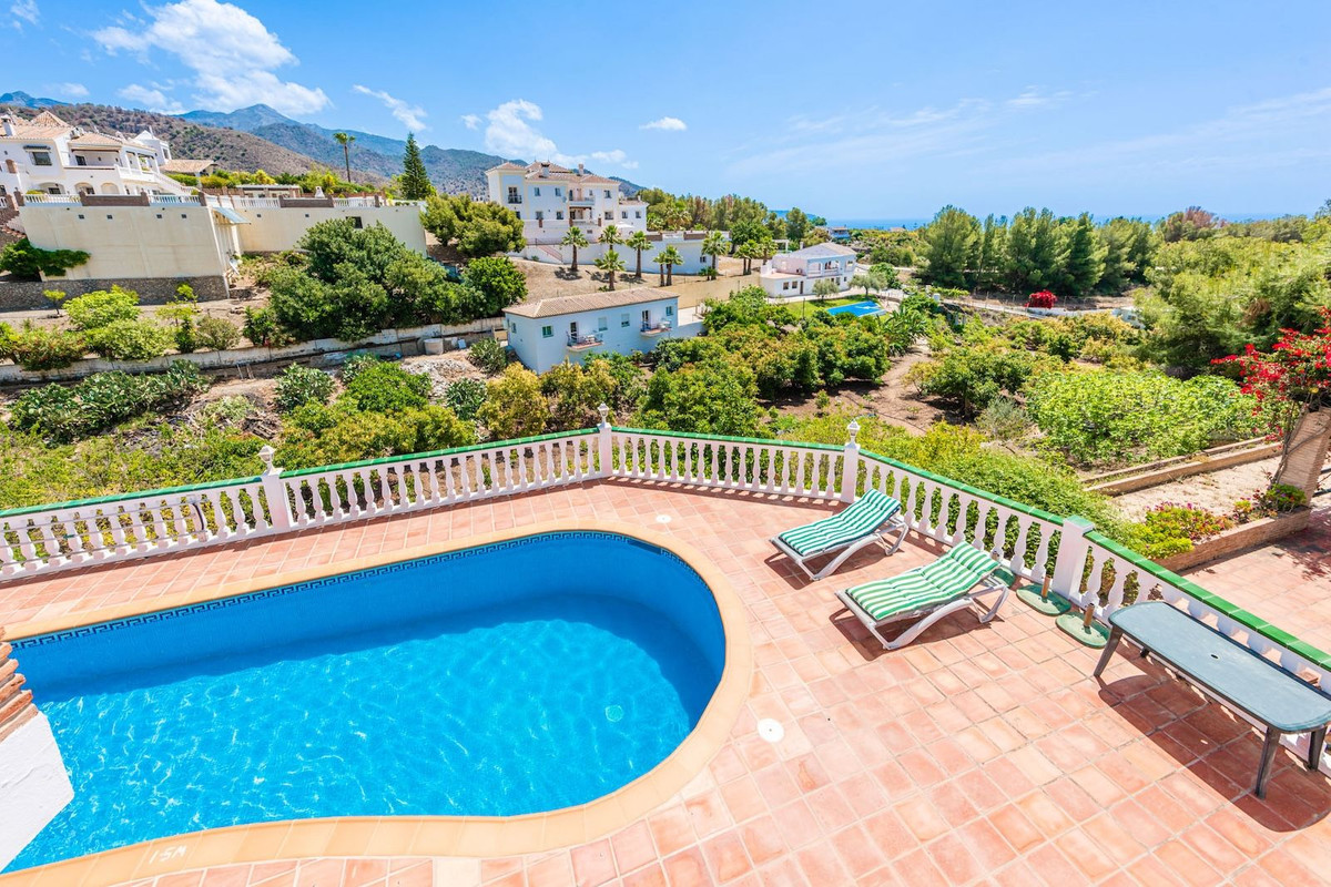 Beliggende mellem de charmerende byer Frigiliana og Nerja, tilbyder denne exceptionelle villa i det eftertragtede Cortijos San Rafael den perfekte blanding af privatliv, luksus og middelhavscharme. Omgivet af smukke, modne haver med frugttræer, tilbyder denne store ejendom en betagende udsigt over bjerge og havet, hvilket skaber en rolig og malerisk atmosfære.