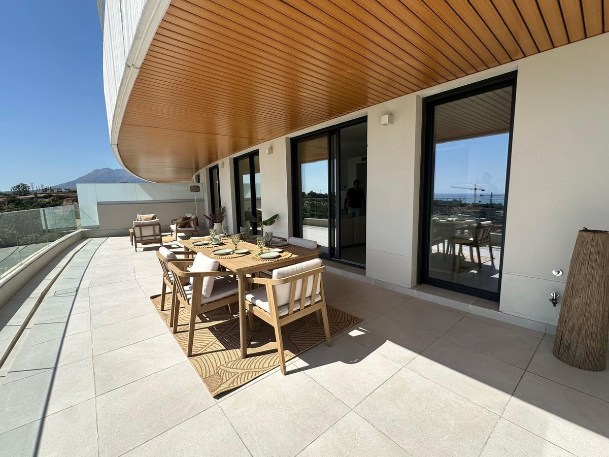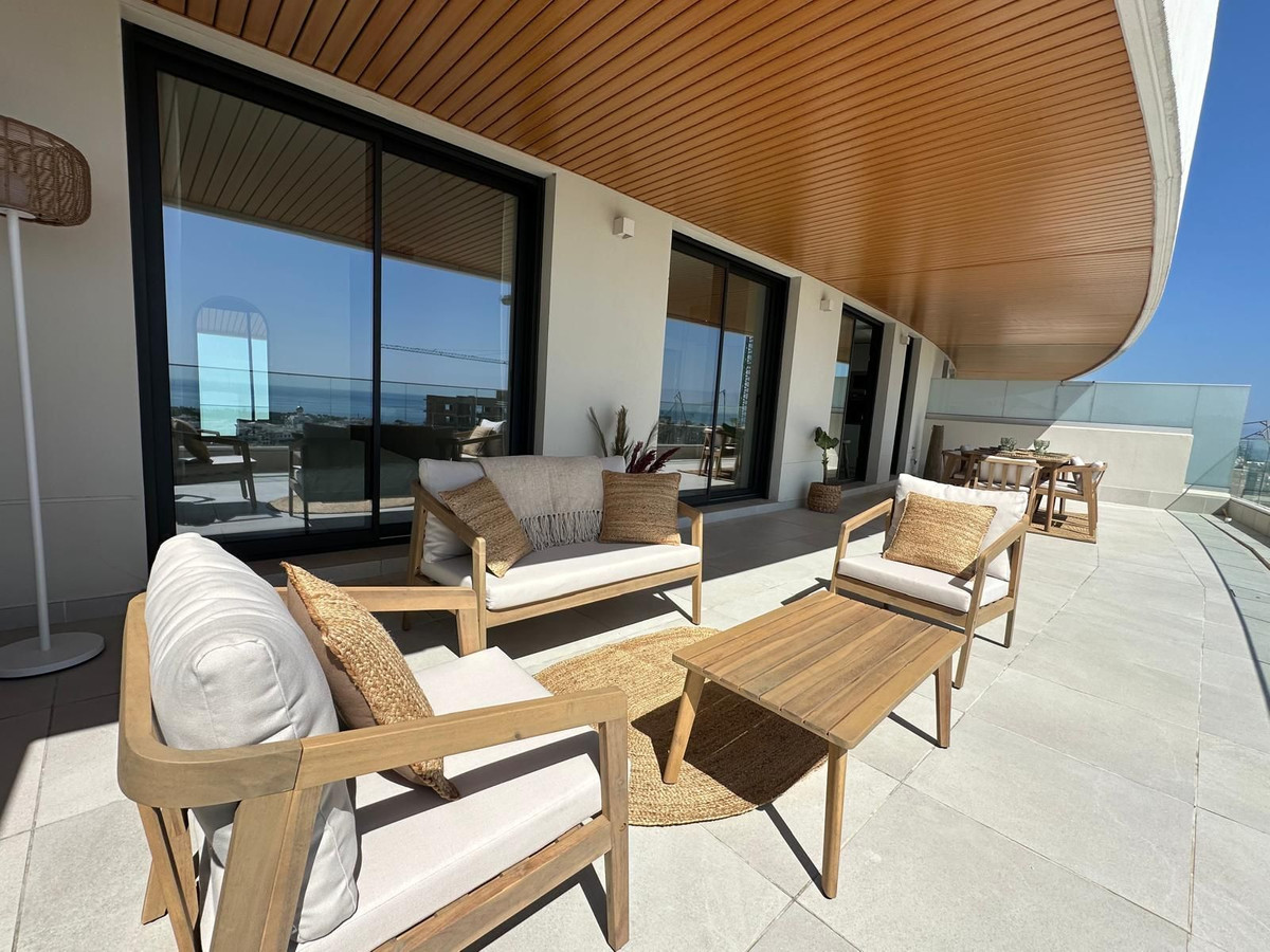 Step into this incredibly spacious property, featuring a 52m² living room with large windows that open up to a generous terrace, providing an opportunity to admire the wonderful sea views and the stunning sights of Gibraltar and the African coast. The open concept kitchen is fully equipped with top-of-the-line Bosch appliances, all under guarantee.