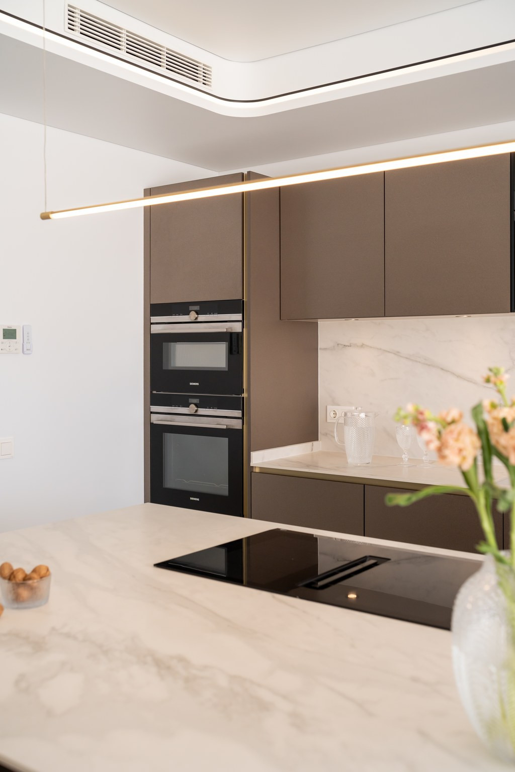 Inside, the villa offers a spacious open-plan living and dining area with floor-to-ceiling windows that flood the space with natural light and create seamless connections to the outdoors. The kitchen, fitted with SIEMENS appliances and a practical central island, is perfectly suited for everyday living as well as entertaining. The four bright and comfortable bedrooms include a master suite with a walk-in wardrobe, an en-suite bathroom, and a private terrace access.