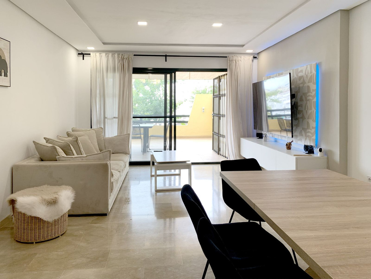 Discover your new home in this spectacular renovated ground-floor apartment! Enjoying a prime location just 15 minutes from Estepona and San Pedro, this bright 106 m² apartment features two spacious bedrooms, one en suite, perfect for enjoying tranquility and comfort. The modern kitchen and renovated bathrooms add a contemporary touch to the cozy atmosphere.