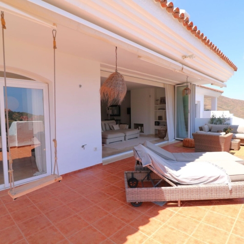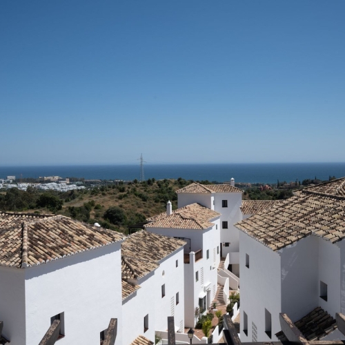Views available from October 15th. Discover this exceptional first-floor apartment in the sought-after Terrazas Del Rodeo urbanization, Nueva Andalucía – a peaceful yet convenient haven just a 15-minute walk from Puerto Banús and the beach (recommend exiting via the south gate for a scenic stroll). West-facing for beautiful afternoon light and sunsets, this property features 2 bedrooms and 2 bathrooms, with a spacious layout including an entrance hall, bright living-dining room with terrace access, fully equipped kitchen also opening to the terrace, a large master bedroom with en-suite bathroom, a secondary bedroom, and an additional bathroom. The highlight is the generous 40 m² covered terrace offering stunning views – perfect for outdoor living.