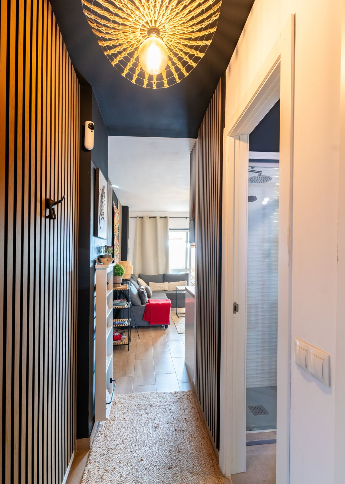 Comfortable living room with sofa bed, TV area, and direct access to the terrace