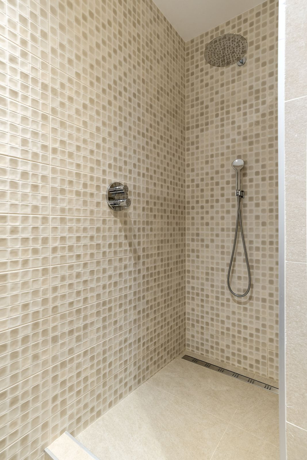 On the ground floor, the entrance hall welcomes you with elegant wooden doors and a guest toilet. The spacious 50 m² living room offers both a sitting area and dining area. A separate fully fitted kitchen with built-in NEFF appliances 2 x Fridge-freezer, Microwave, Oven, Dishwasher, Coffee machine, the kitchen opens onto a terrace.