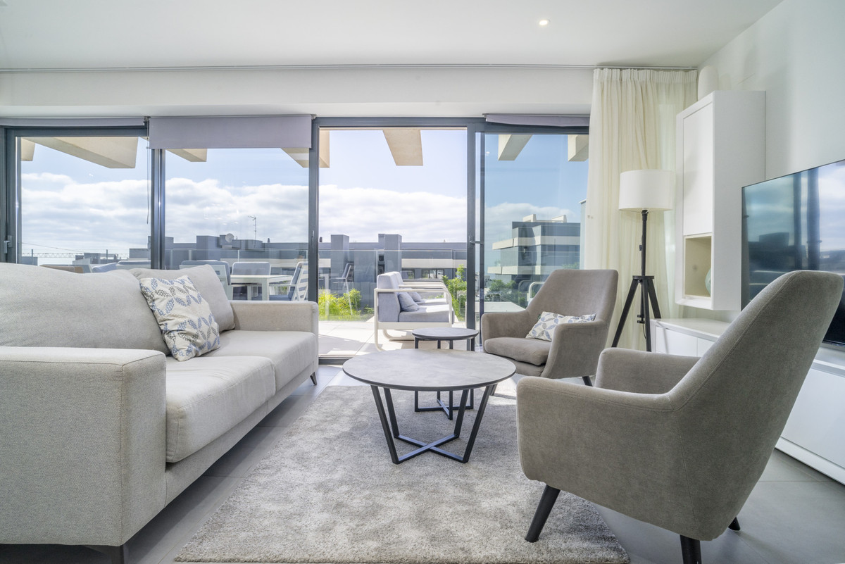 The apartment features an open-plan layout with a bright living and dining area, a fully equipped contemporary kitchen, and direct access to a generous private terrace – the ideal spot to enjoy the sunshine and coastal breezes. The three well-proportioned bedrooms include a luxurious master suite, designed for relaxation and convenience. Fully furnished including outdoor furniture. Proven rental track record.