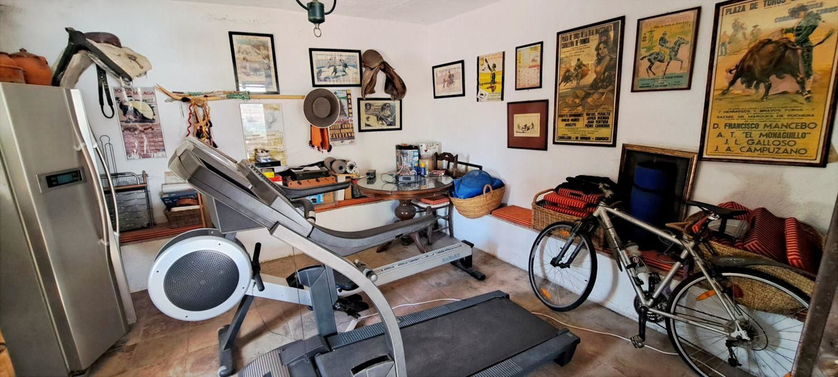 The swimming pool (renovated in 2024) is beautifully situated in the courtyard. Adjacent to this lovely spot is a spacious patio with a pool table, a gym with a roof terrace, a small studio with a beer brewery and a spacious warehouse. These areas have running water and electricity, and these outbuildings can be used for various purposes. The whole area is attractive and will be used extensively in the Mediterranean climate.