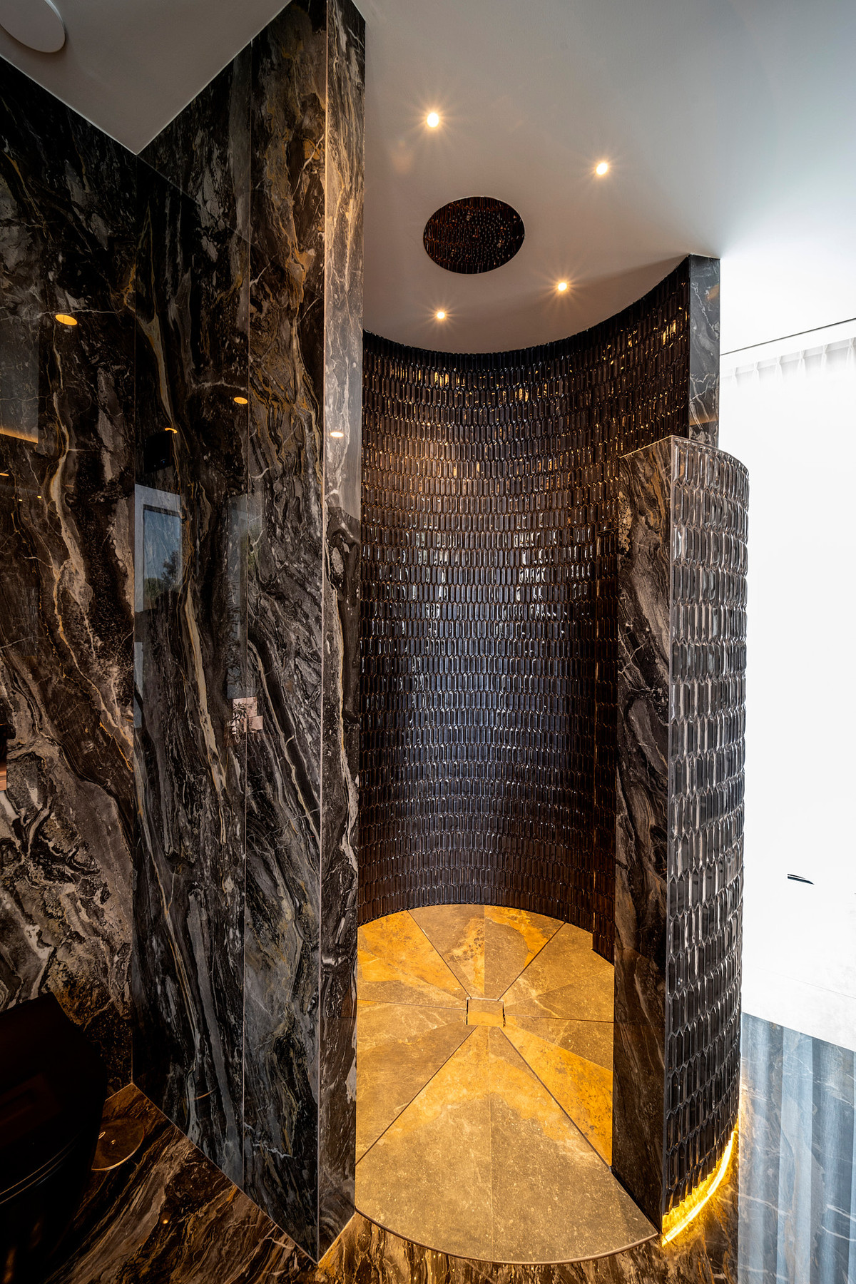 Fordelt på 4 etager med smukt designet boligareal på en grund på 1.283 m². De rummelige åbne opholdsområder forbindes problemfrit gennem gulv-til-loft glaspartier, mens det topmoderne køkken med kvalitetsapparater og elegant design gør hverdagen ekstraordinær.