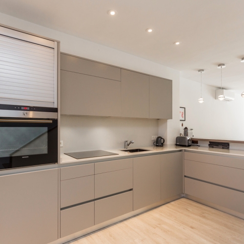 Consisting of three levels. A ground floor with an open plan layout throughout the kitchen, dining and living area provides a sociable and user-friendly space. A beautifully crafted kitchen of the highest quality with book matched porcelain worktops, Gaggenau appliances and underfloor heating. A formal dining area for up to 8 people and cosy living room complemented by customer made furniture unique to this project completes this floor.
