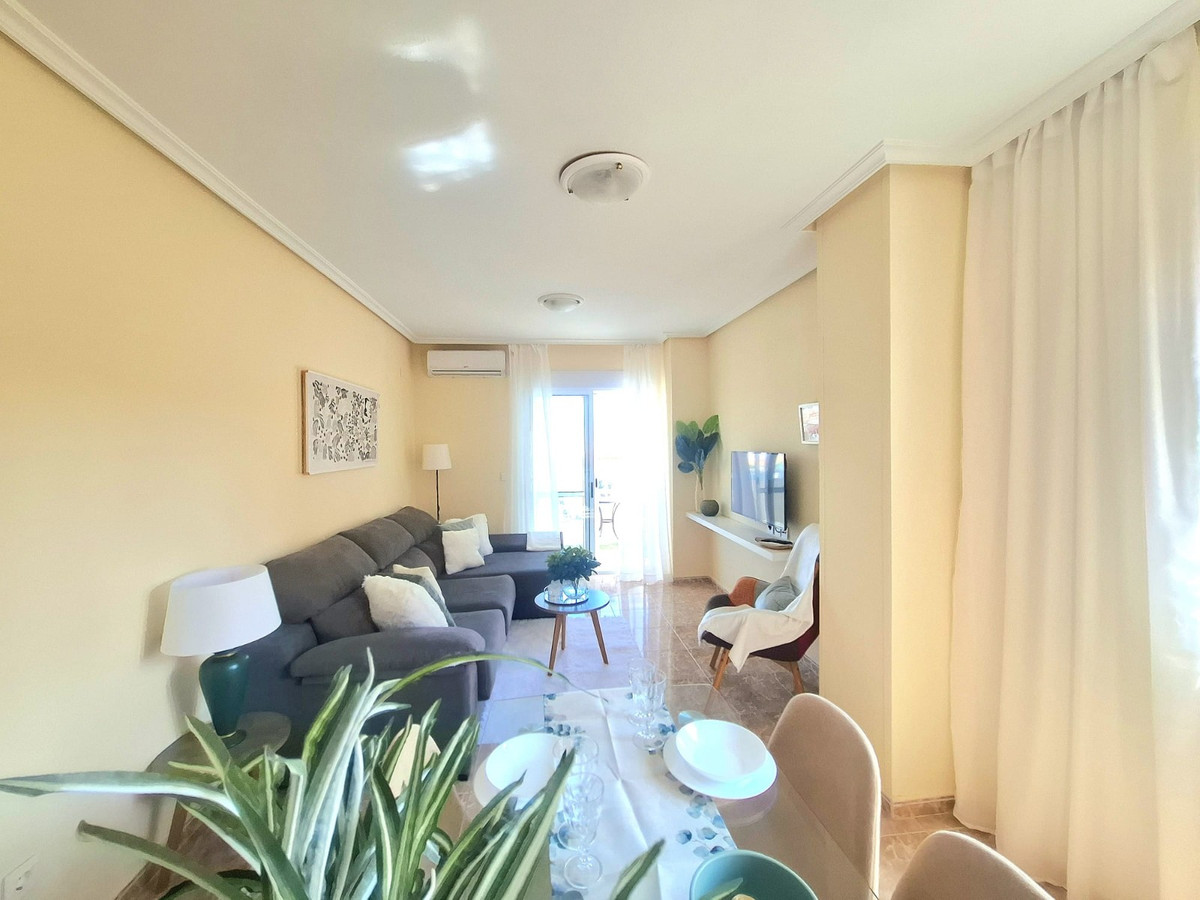 The apartment has 2 bedrooms, 1 bathroom, a bright living-dining room with air conditioning, a separate kitchen, and a spacious balcony with wonderful open views.Just a short walk from the popular Playa Del Cura and Playa Los Locos beaches, as well as shops, restaurants, and all local amenities.Built in 2002 60 m²Sold fully furnished and tastefully decoratedCommunity fee: €563/yearProperty tax (IBI): €240/yearThis is a perfect choice for those seeking a ready-to-move-in apartment in a central location, ideal both as a holiday retreat and as a rental investment.